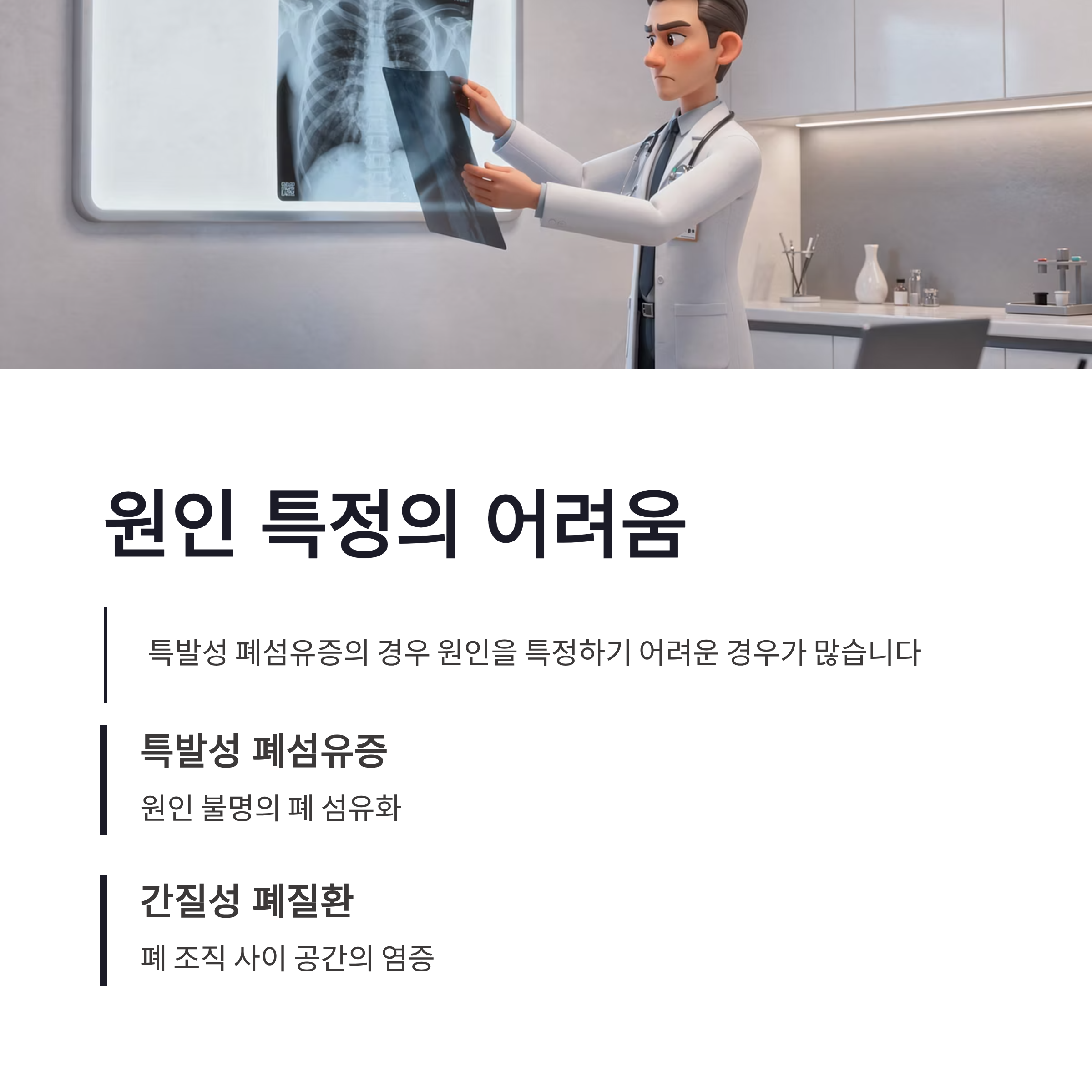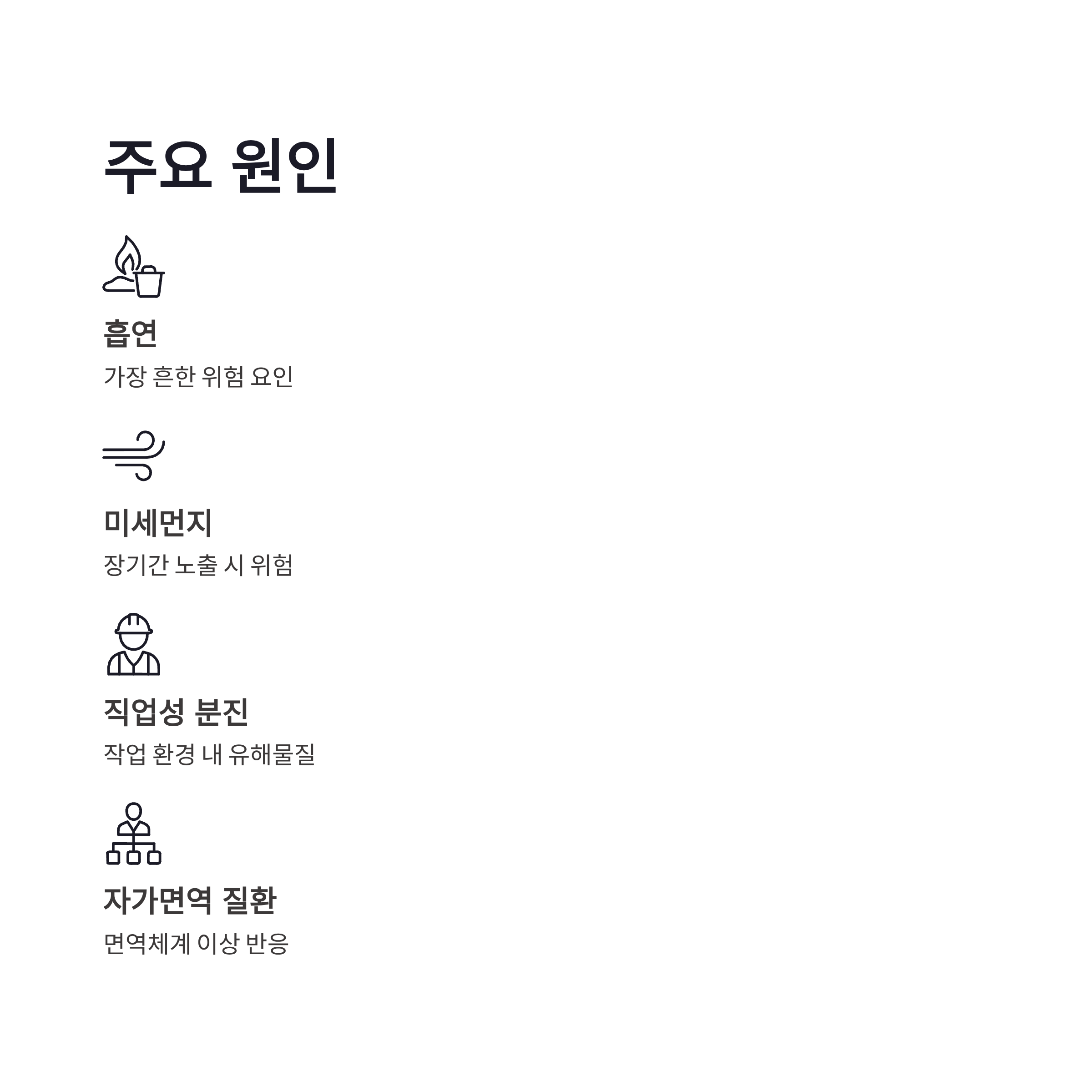 | 주요 원인 | 흡연, 미세먼지, 직업성 분진, 자가면역 질환 |