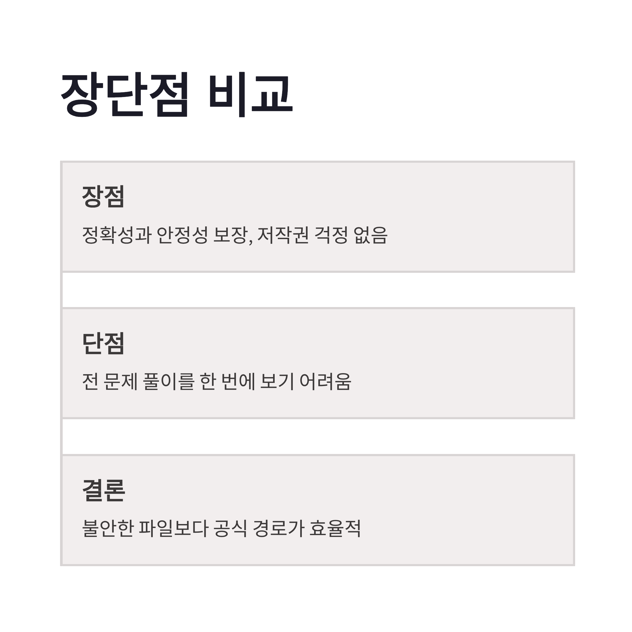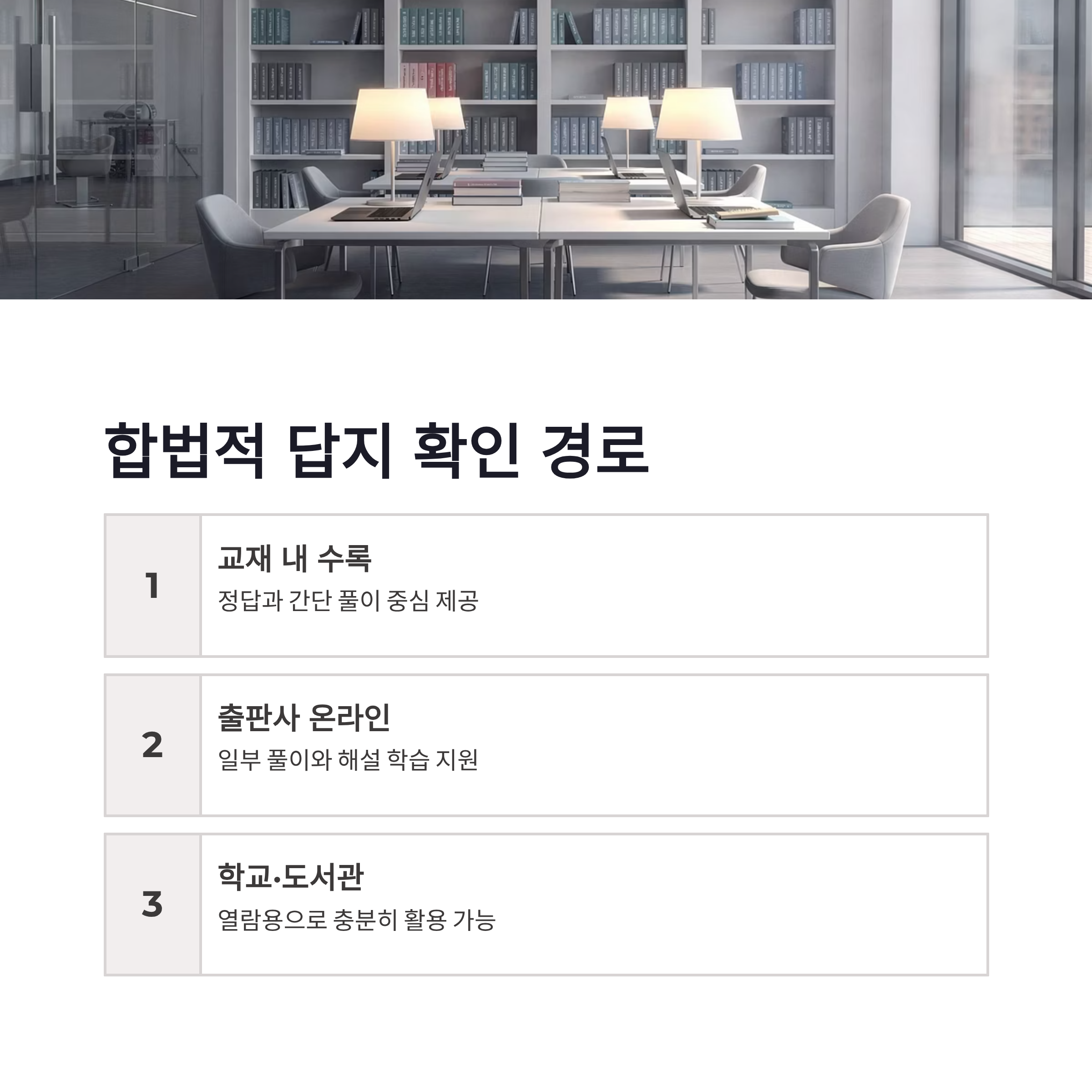 결론부터 말하면, 정식 ‘전체 답지 PDF 무료 배포’는 없습니다. 대신 합법적으로 확인 가능한 방법들이 있더라구요.