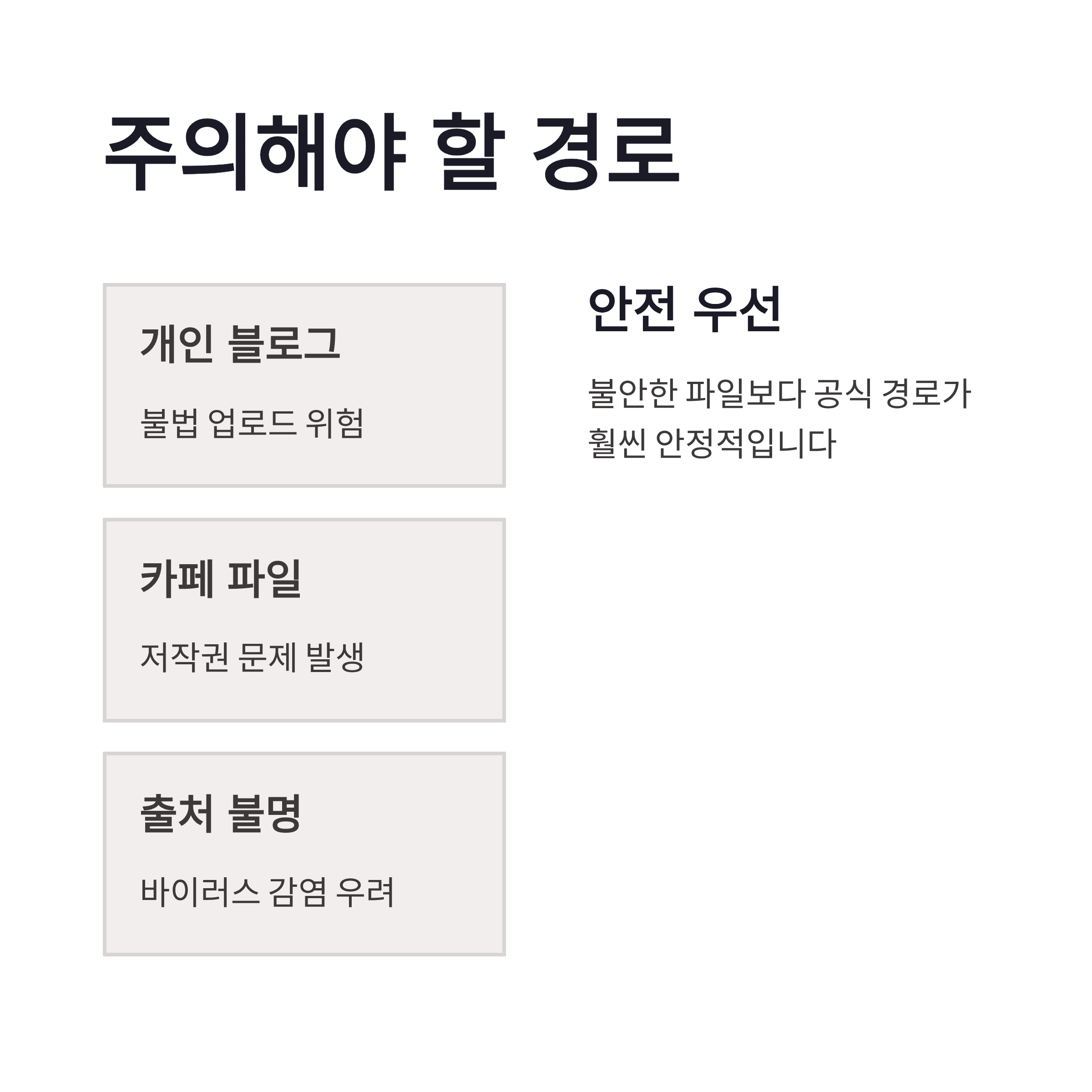 | 주의 대상 | 개인 블로그·카페 | 불법 업로드 위험 |
