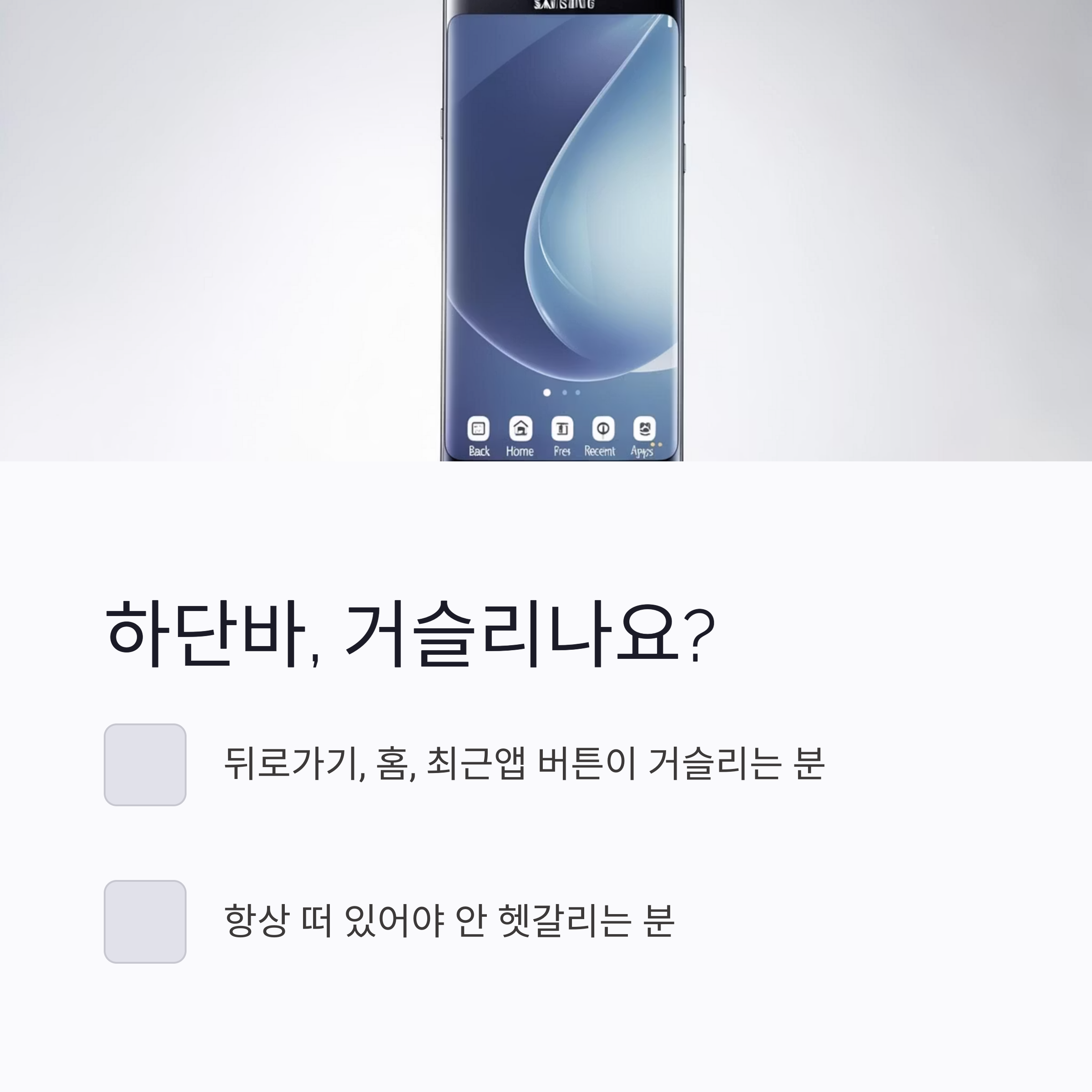 갤럭시 핸드폰 쓰시면서 하단에 뜨는 네비게이션 바 (뒤로가기, 홈, 최근앱)