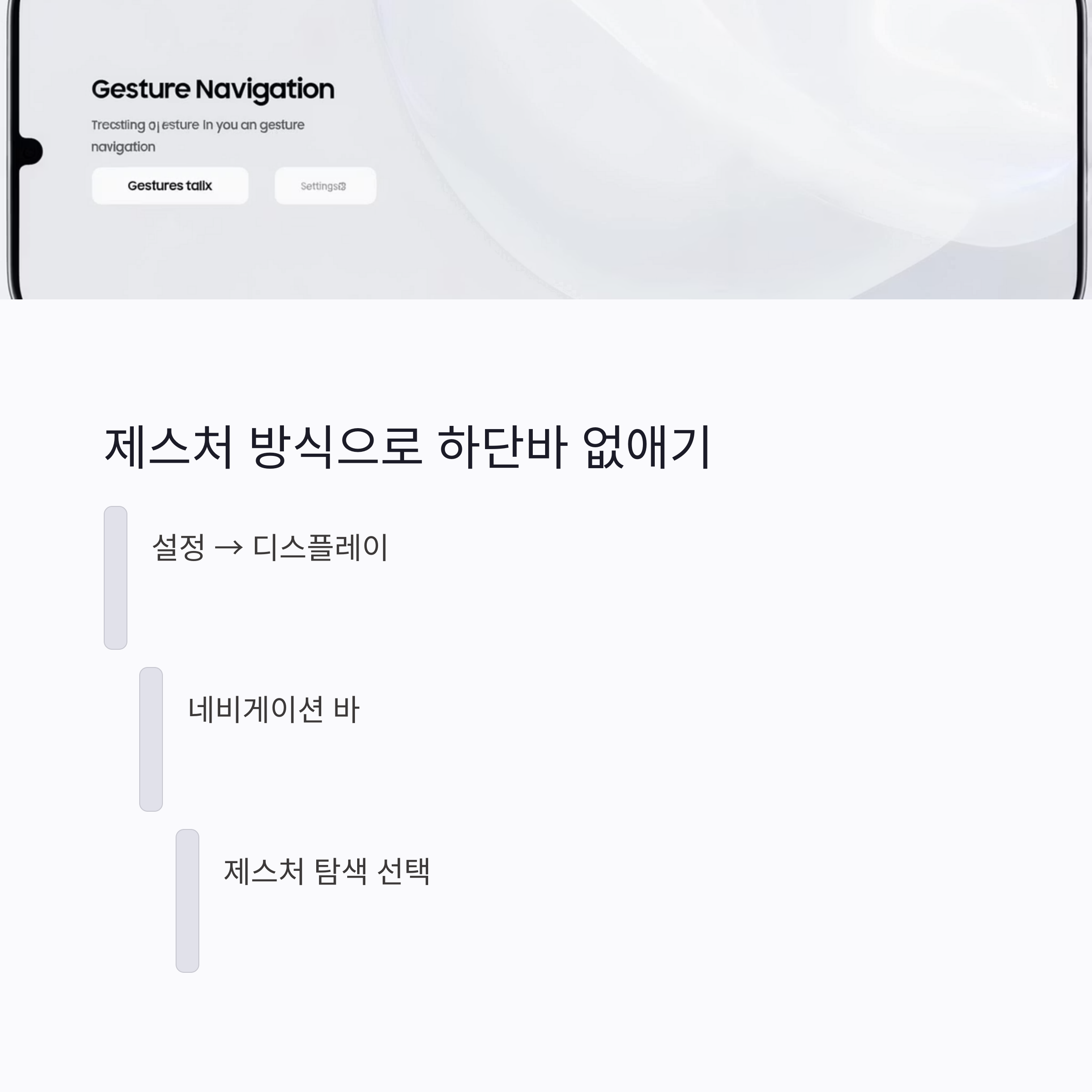 - ‘제스처 힌트’ 비활성화 → 완전히 깔끔한 화면