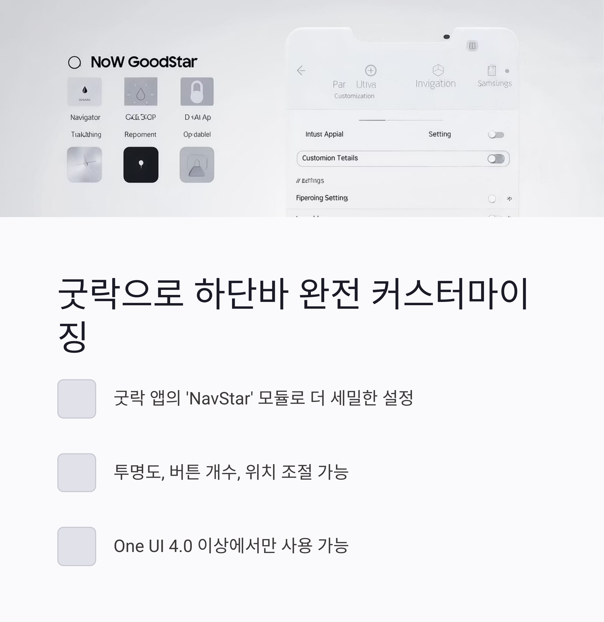 더 디테일하게 바꾸고 싶다면 굿락(Good Lock) 앱 설치! 그 안에 있는 NavStar 모듈을 통해:
