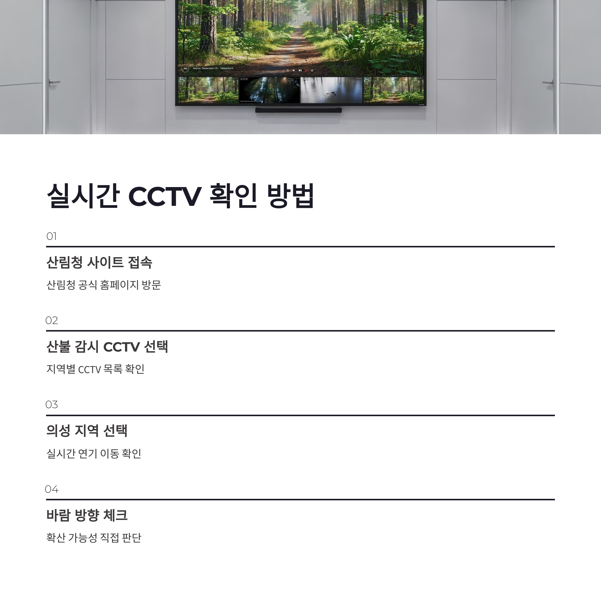 | CCTV 확인 | 산림청·지자체 | 실시간 연기 확인 |