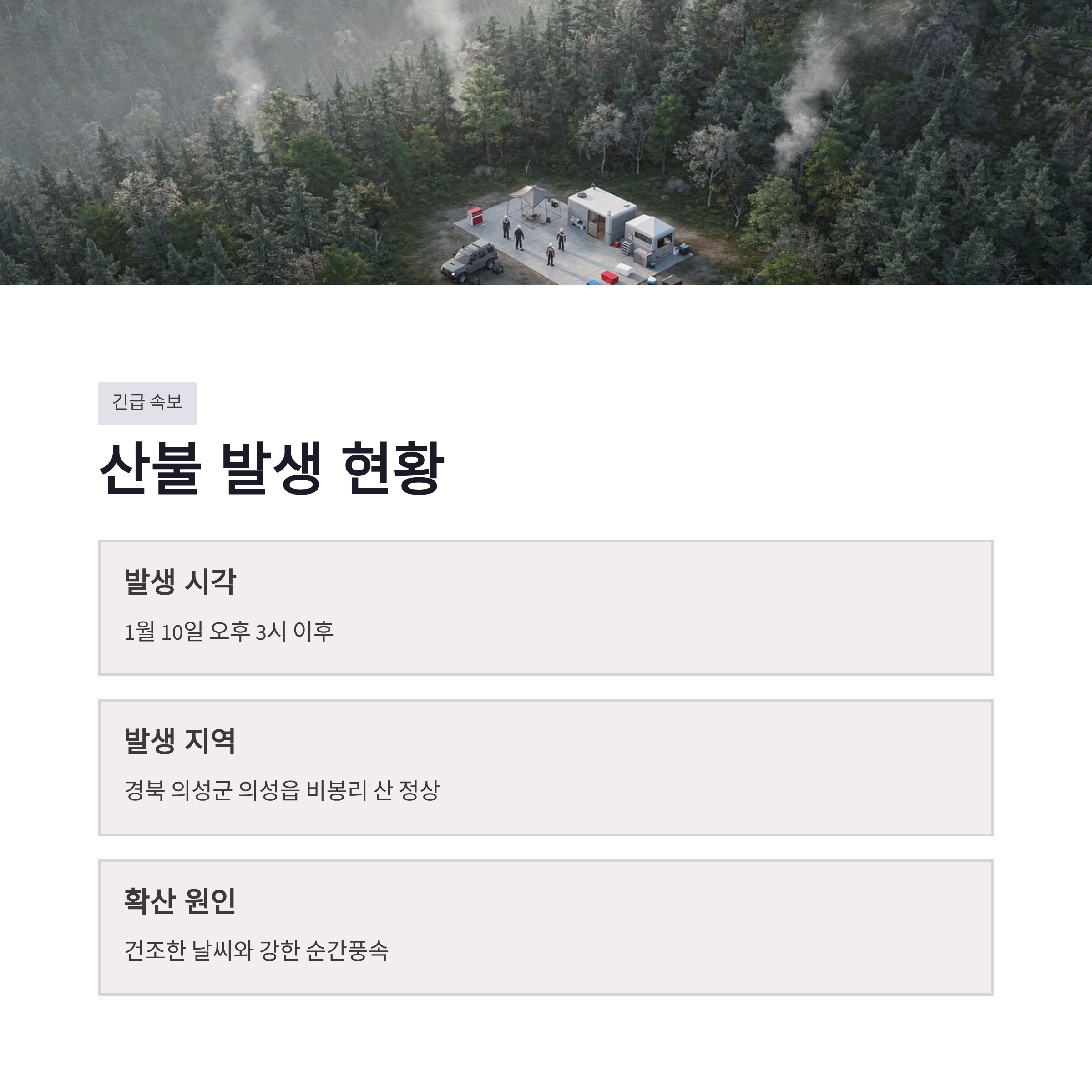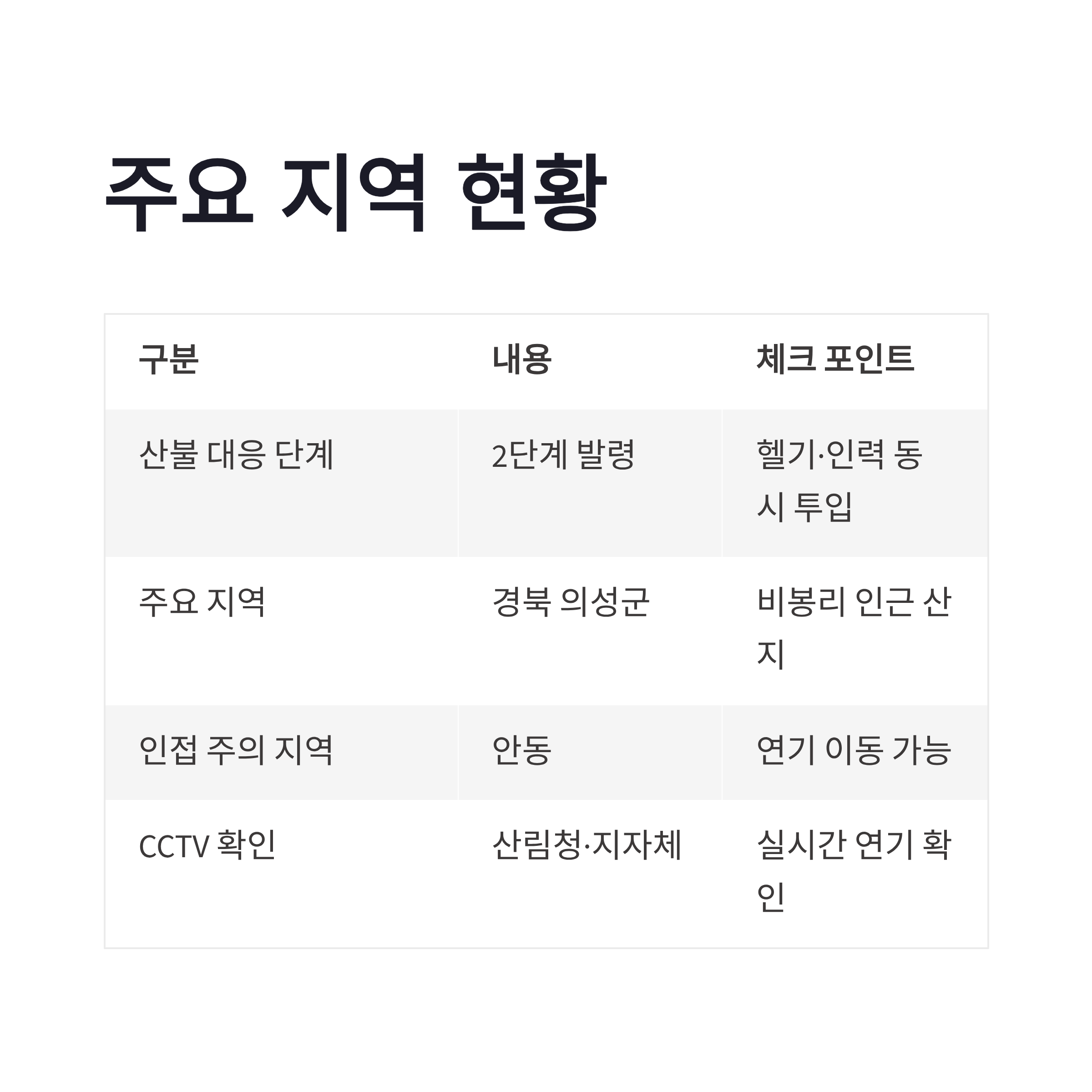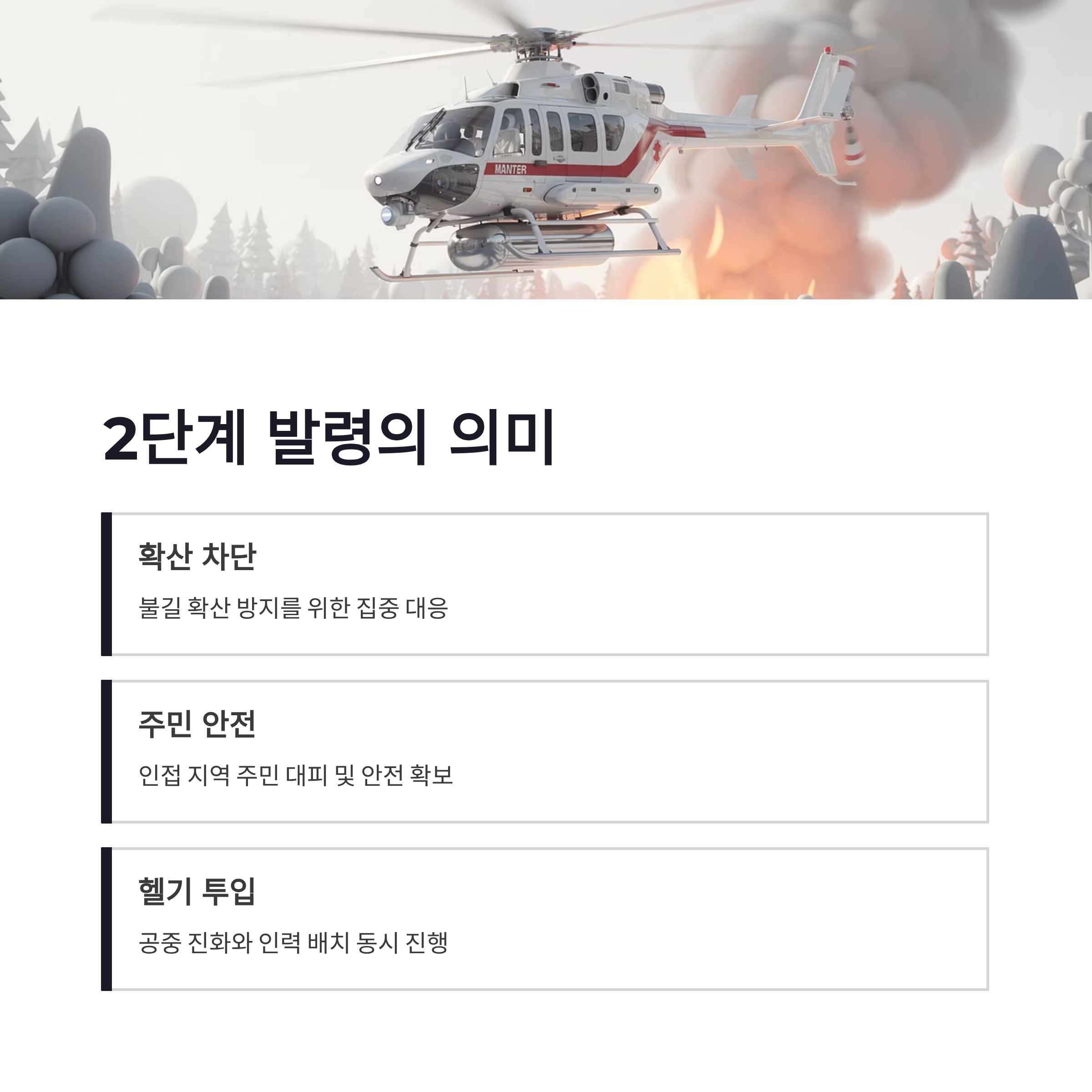 | 산불 대응 단계 | 2단계 발령 | 헬기·인력 동시 투입 |