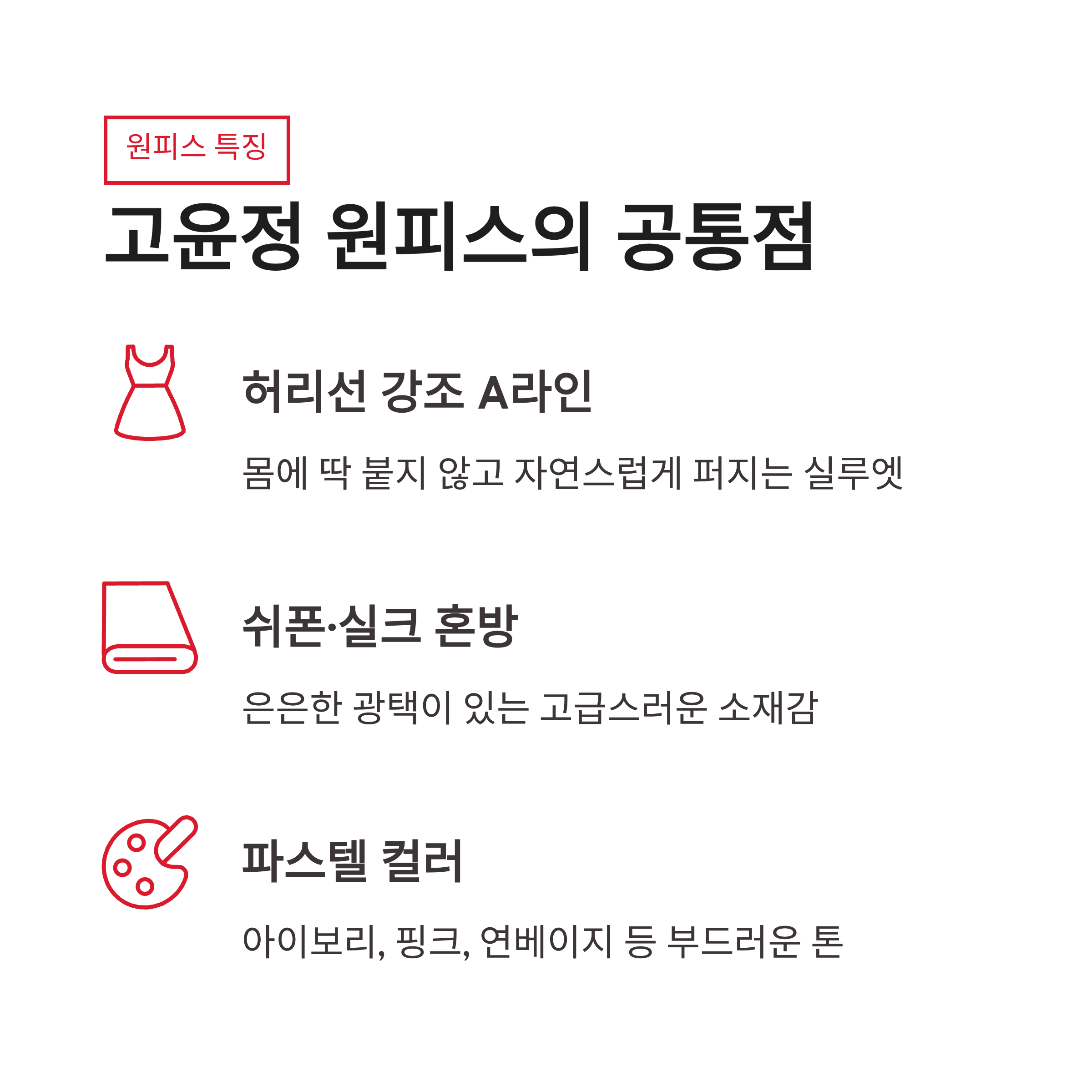 | 원피스 실루엣 | 허리선 강조 A라인 |