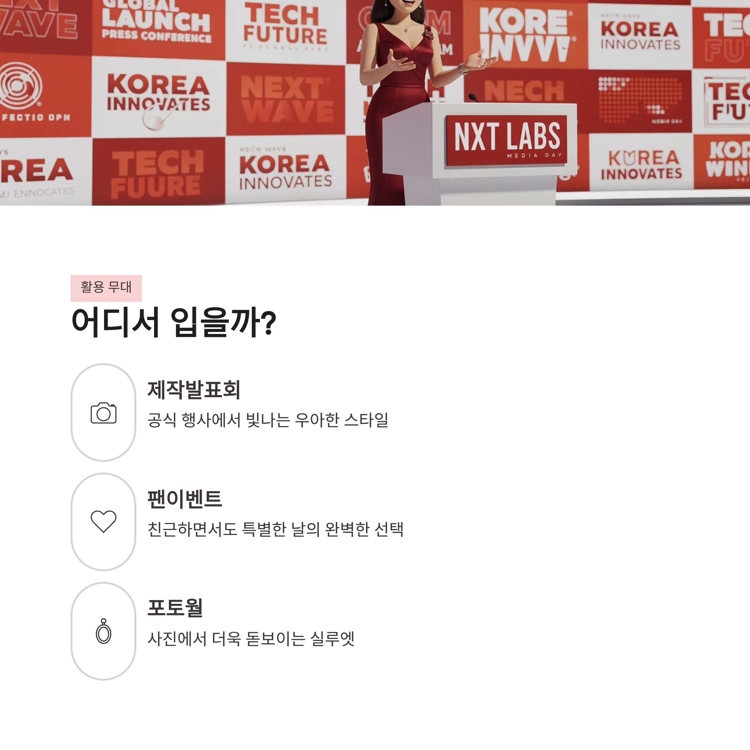 | 활용 무대 | 제작발표회, 팬이벤트, 포토월 |