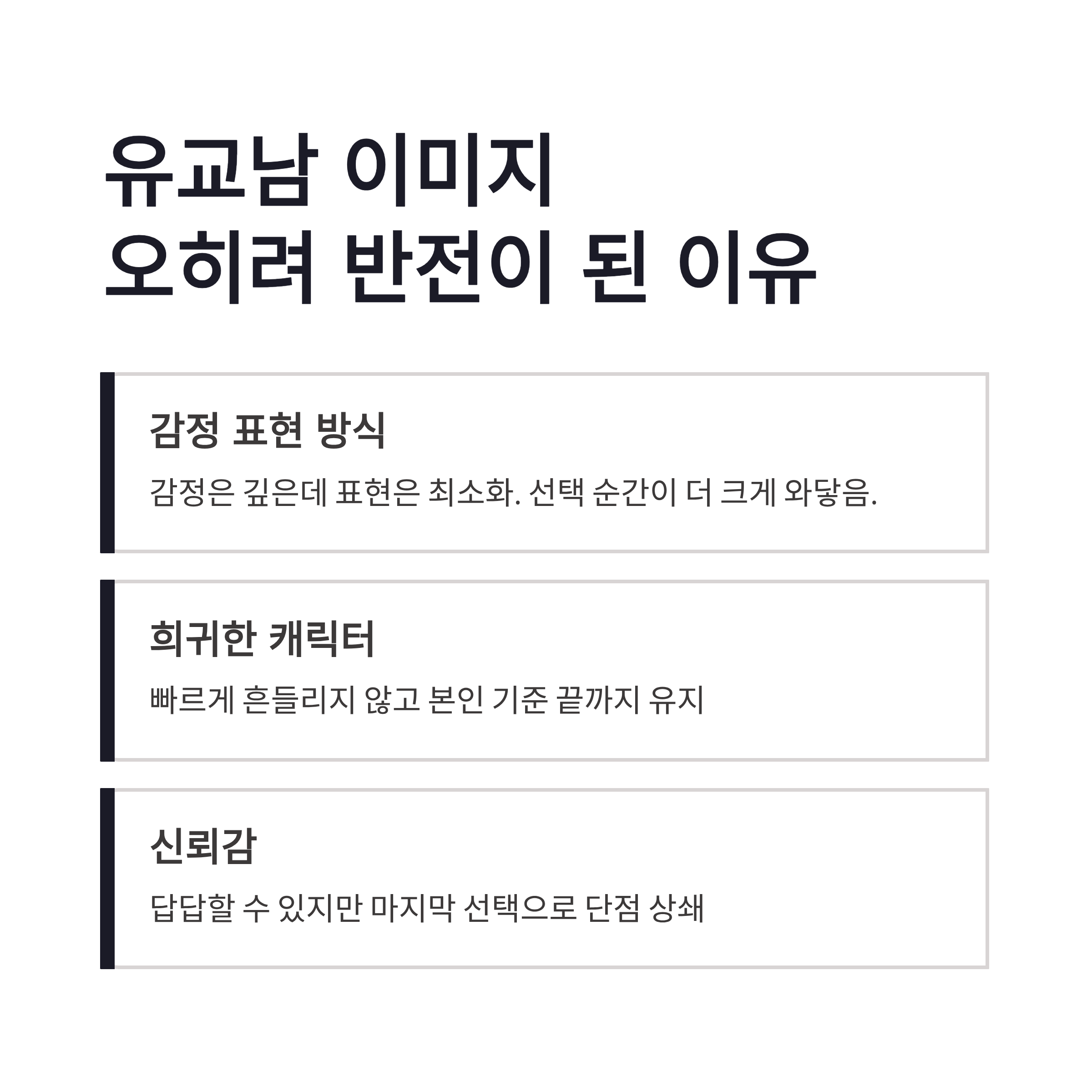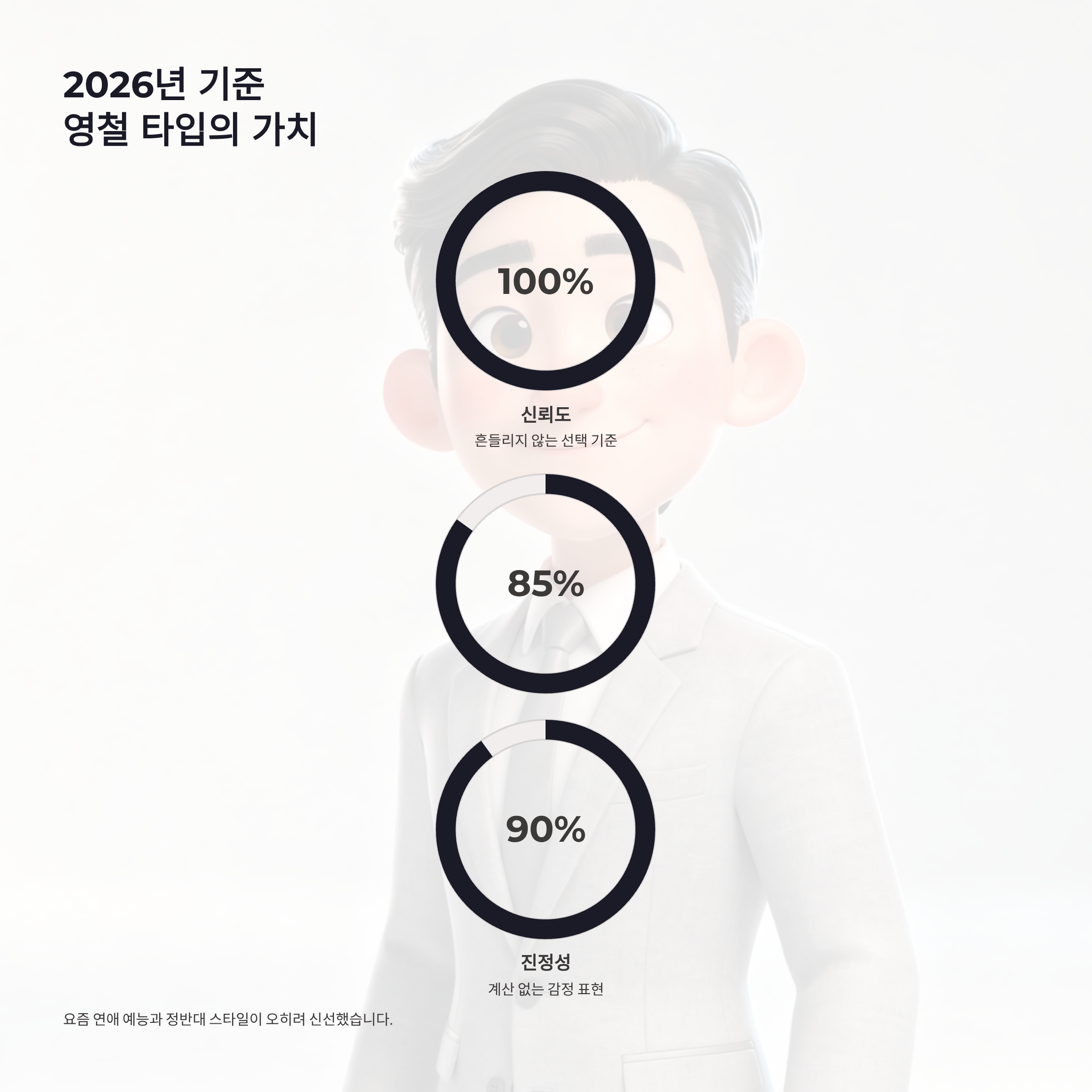 영철이 유교남이라서 재미없을 거라고 생각했다면… 완전 오산이었습니다 ㅠㅠ 요즘 연애 예능이 감정 폭발 위주라면, 영철은 정반대였어요. 감정은 깊은데 표현은 최소화. 그래서 선택 순간이 더 크게 와닿았던 것 같더라구요. 2026년 기준으로 봐도, 나는솔로 29기 영철 같은 타입은 오히려 희귀한 캐릭터입니다. 빠르게 흔들리지 않고, 본인 기준을 끝까지 가져가는 사람. 장점은 신뢰감, 단점은 답답함일 수 있지만… 마지막 선택 하나로 단점이 다 상쇄됐달까요.