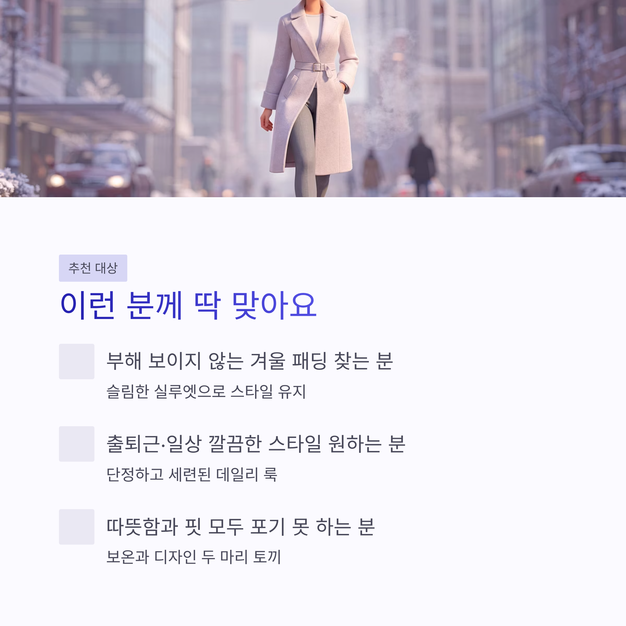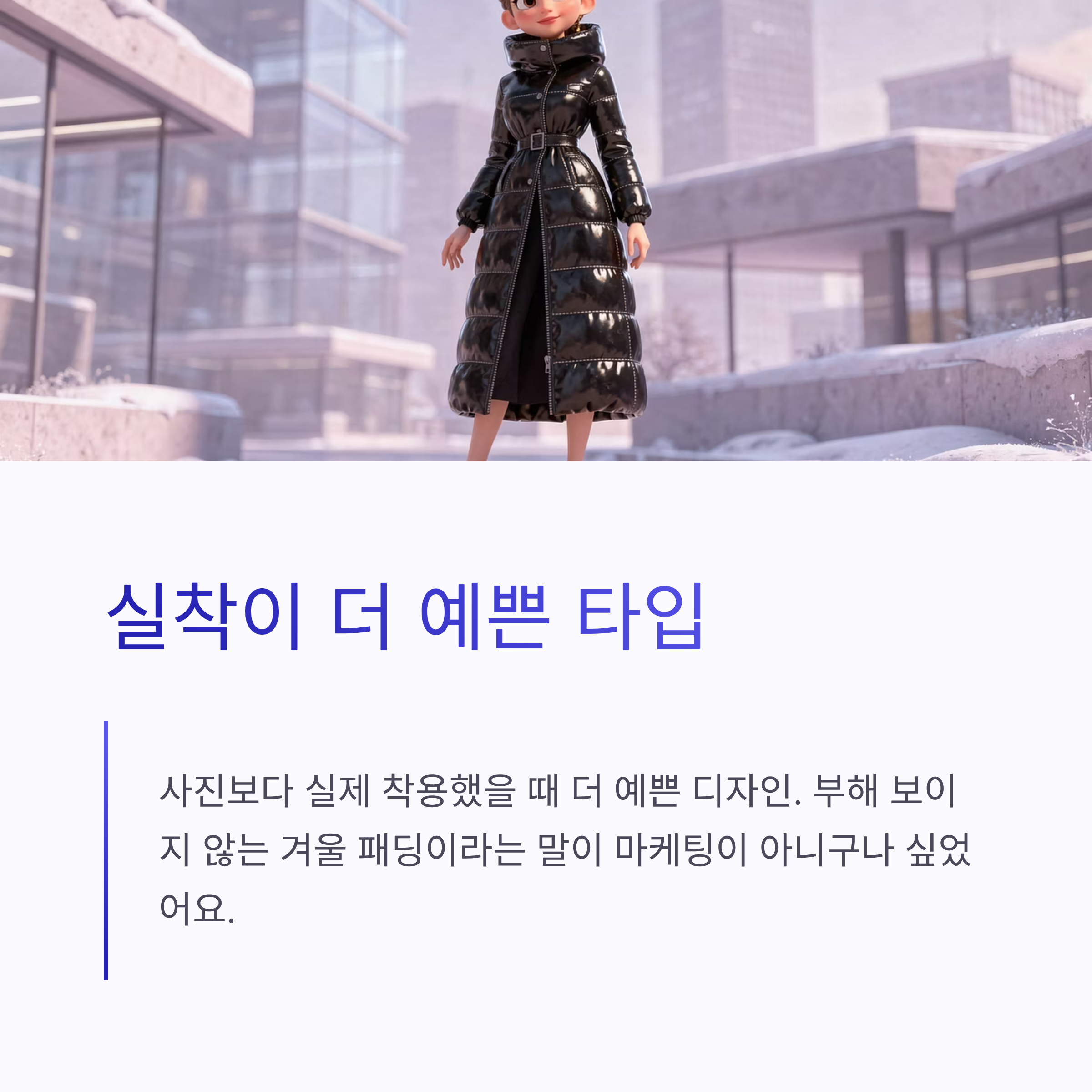 요즘 겨울 패딩 트렌드는 확실히 “과하지 않게, 오래 입을 수 있게” 쪽으로 가는 느낌이에요. 그 흐름에서 노비스 아우라는 꽤 정석 같은 선택입니다.