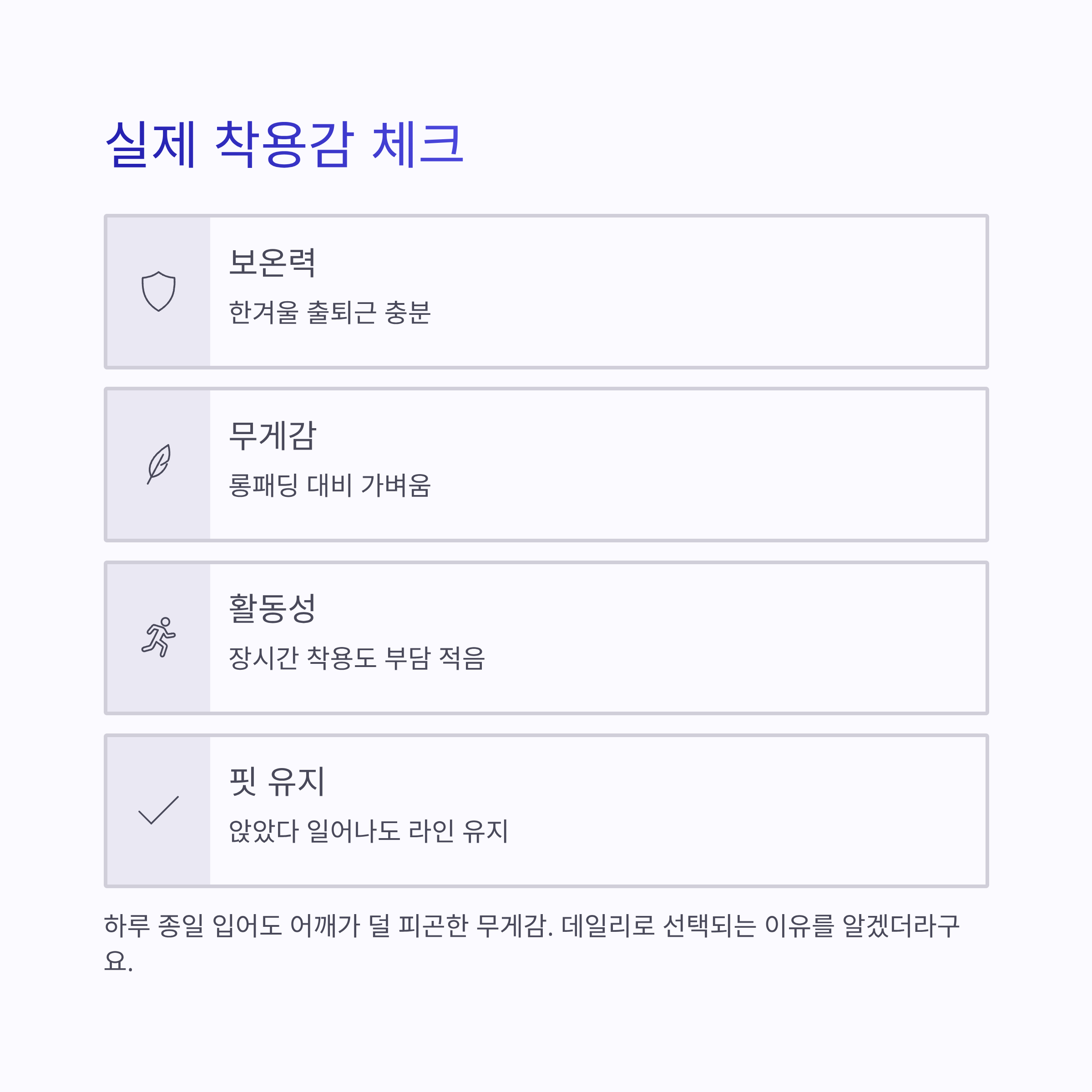 | 무게감 | 롱패딩 대비 가벼움 |