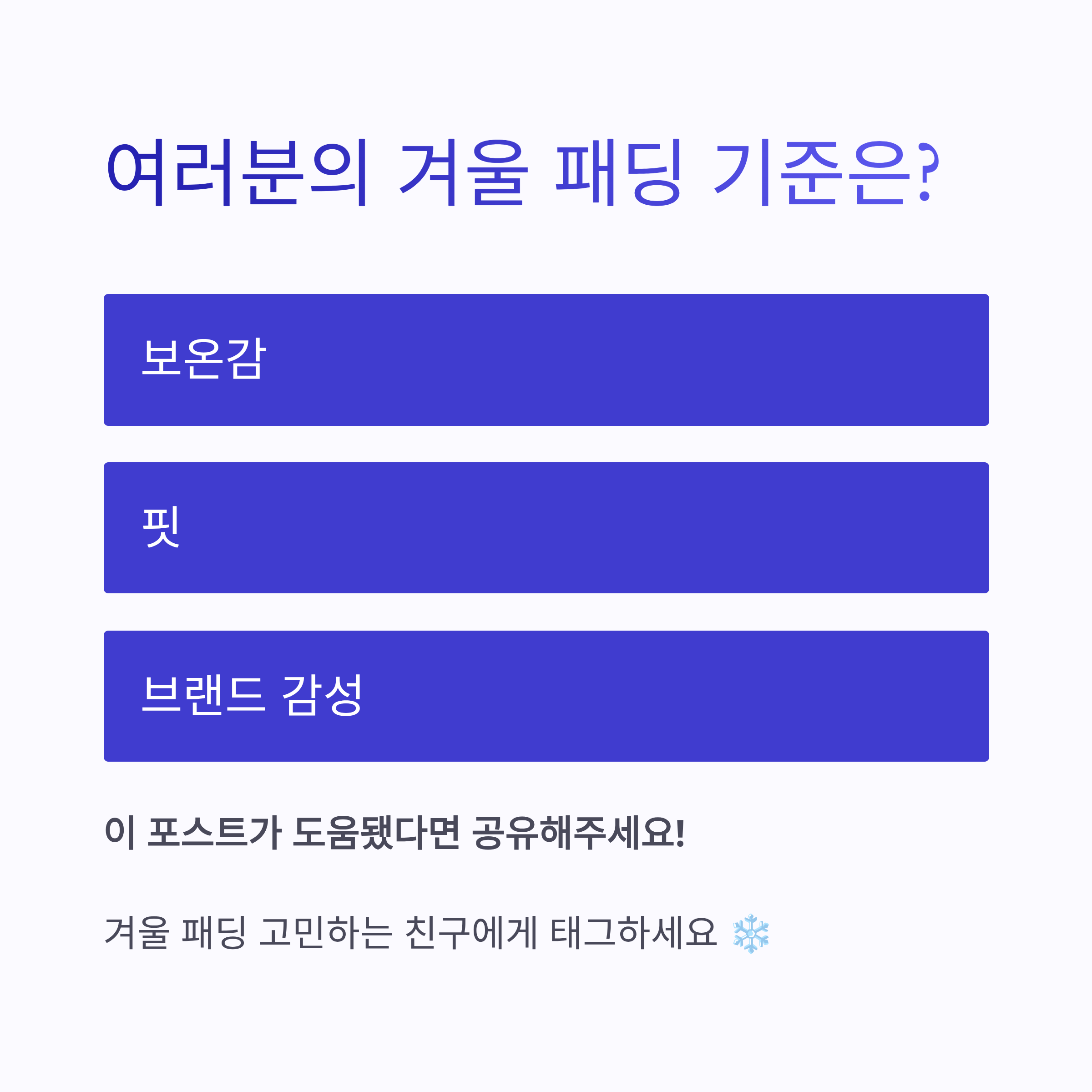 여러분은 겨울 패딩 고를 때 뭐가 제일 중요하세요? 보온감? 핏? 아니면 브랜드 감성? ㅎㅎ