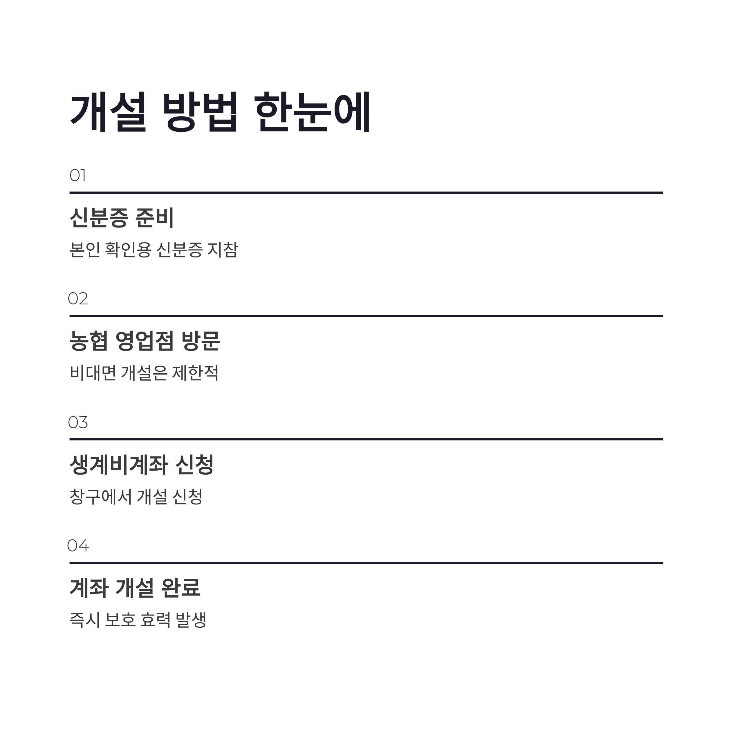 제가 직접 기준 정리하면서 느낀 건데, 농협 압류방지통장 생계비계좌 개설 절차 자체는 생각보다 단순했구요. 다만 일반 입출금 통장이랑은 구조가 달라서 몇 가지 포인트는 꼭 알고 가셔야 합니다.