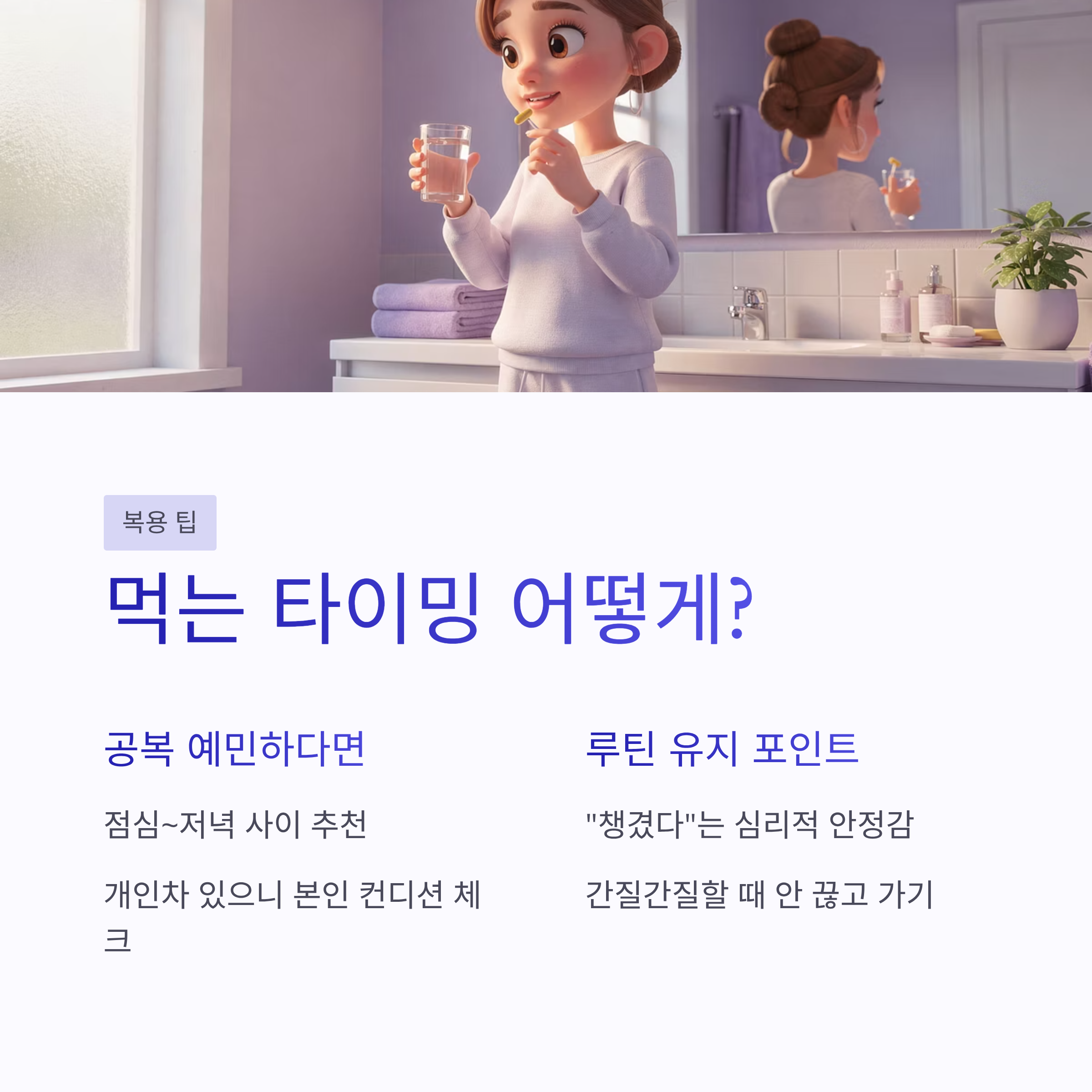 | 루틴화 | “챙겼다”는 심리적 안정감도 큼 | 중요한 일정 전 |