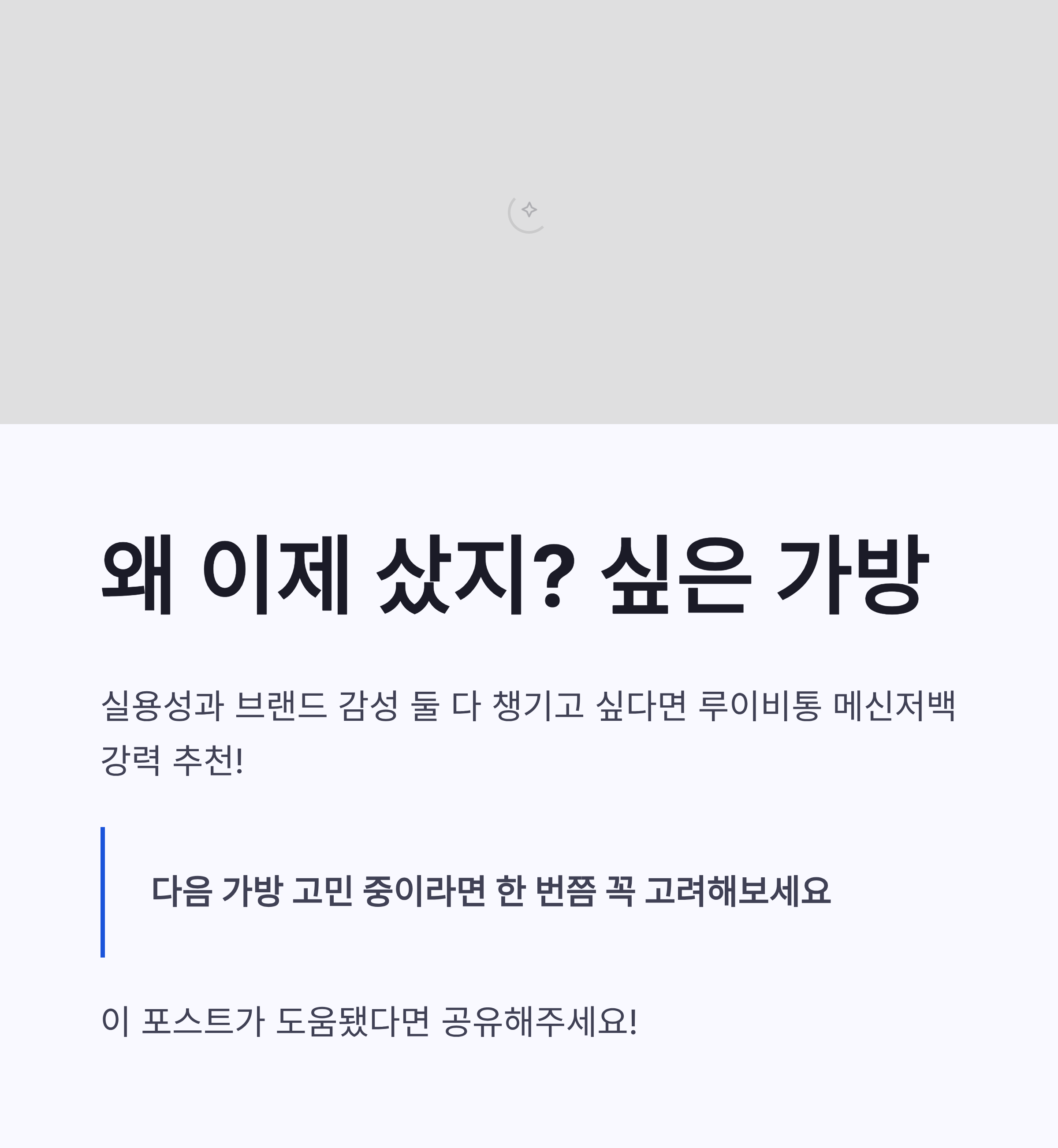 정리해보면 루이비통 메신저백은 실용성과 브랜드 감성 둘 다 챙기고 싶은 분들께 딱이에요. 연령대 상관없이 스타일링 쉬워서 후회 확률 낮은 편이구요. 처음이라면 미니부터, 짐 많으면 MM 추천! 저는 진짜 “왜 이제 샀지?” 싶었어요 ㅎㅎ 다음 가방 고민 중이라면 한 번쯤은 꼭 고려해봐도 좋겠쥬?