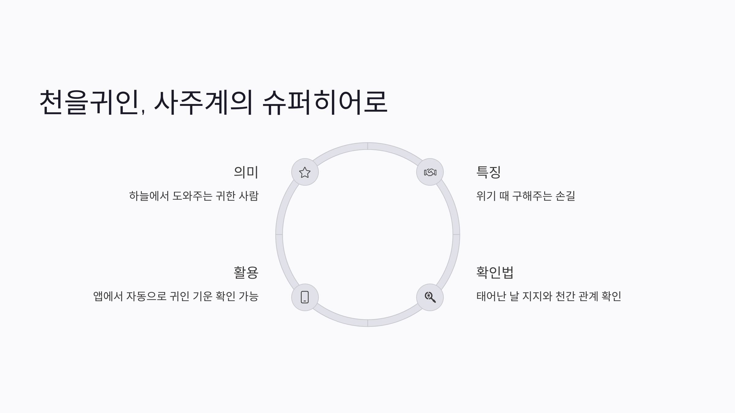 | 천을귀인 | 신살 중 하나로, 귀인을 상징하는 도움의 기운 |