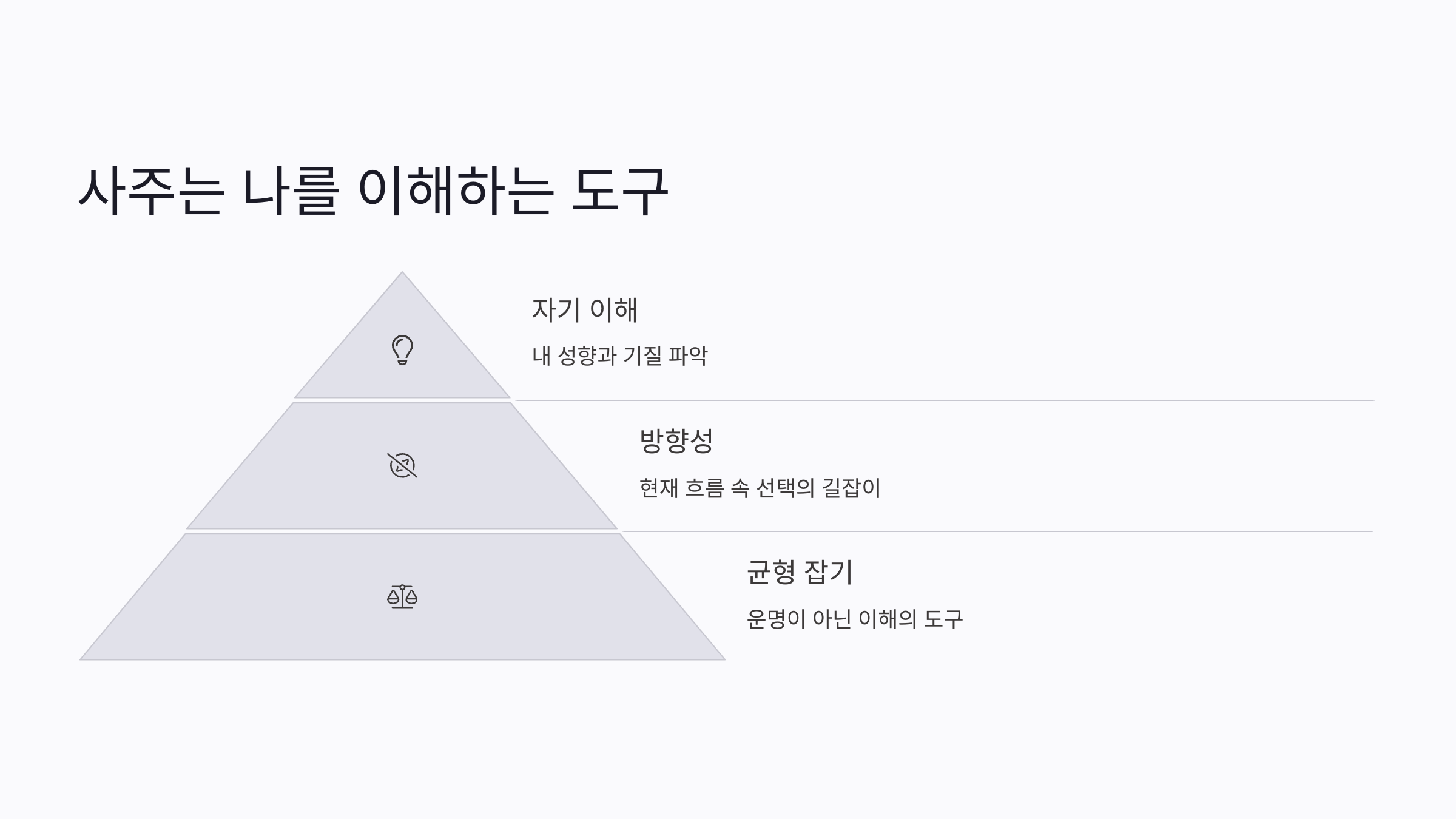 내가 어떤 흐름 속에 있는지, 지금 어떤 선택을 하면 좋을지 알려주는 방향성!