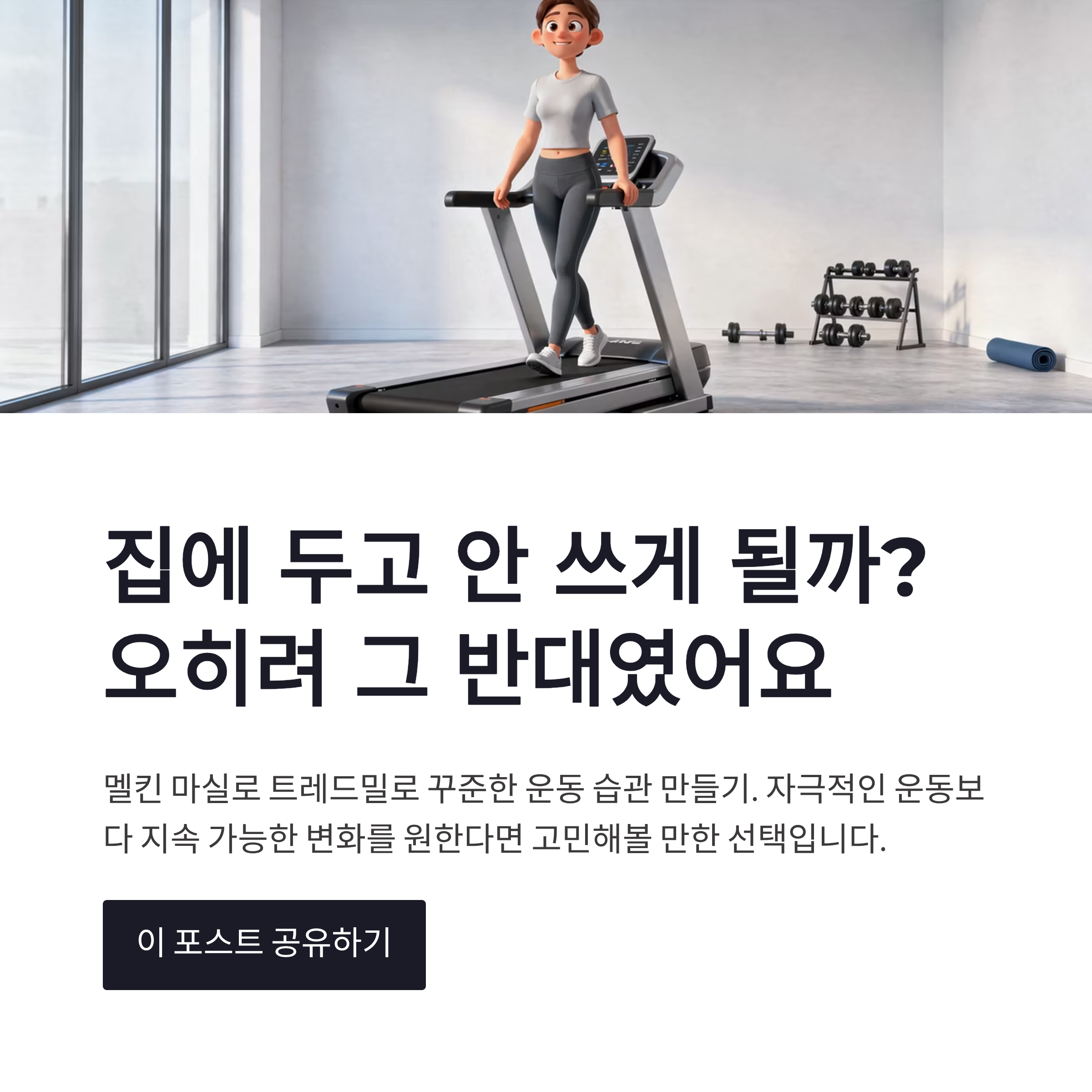 그래서 멜킨 런닝머신 마실로 트레드밀은 다이어트 입문용, 재활·체력 관리용에 더 잘 맞는 느낌이었어요. “오늘은 그냥 안 움직일까…” 싶은 날에도, 이건 켜게 되더라구요.