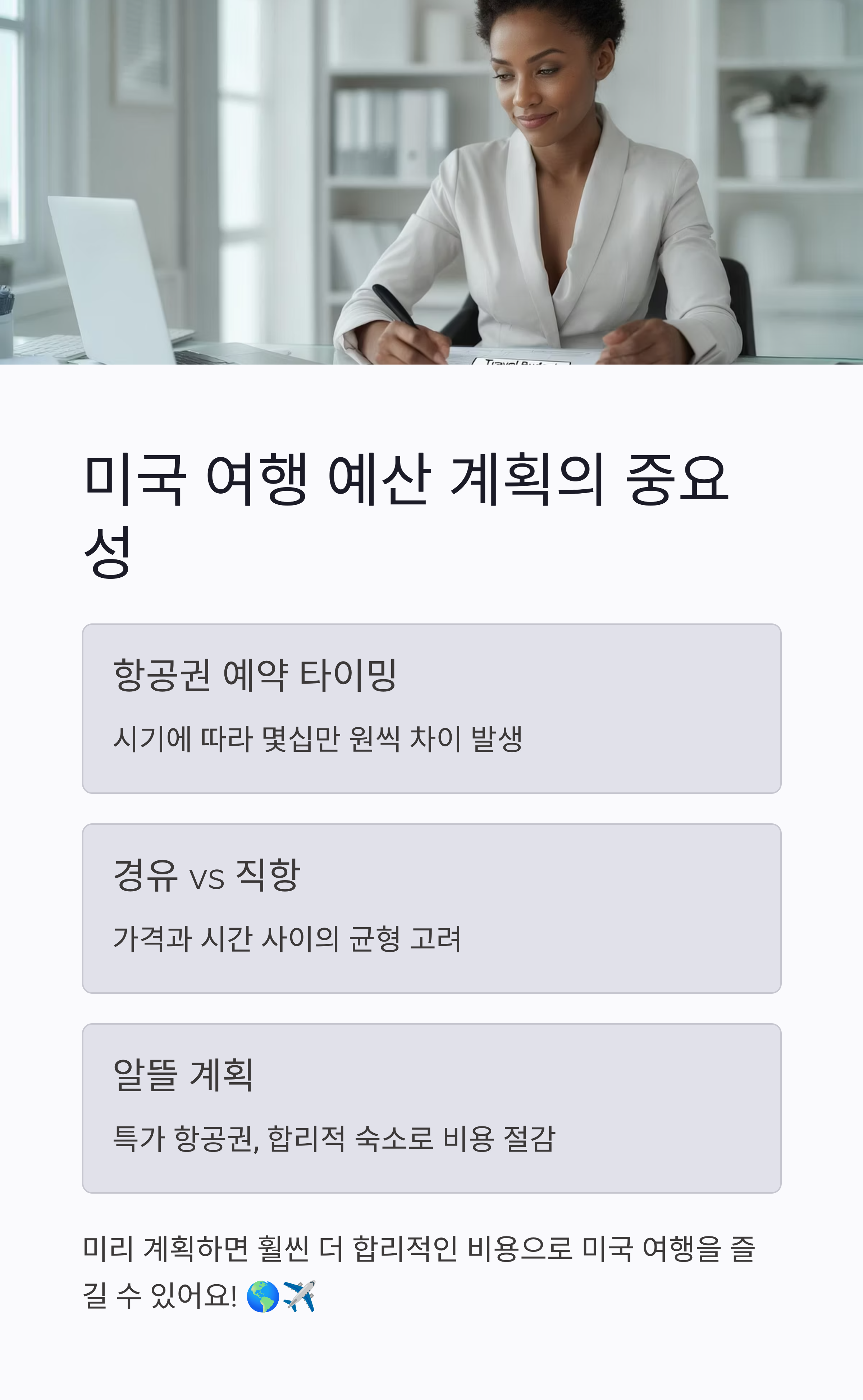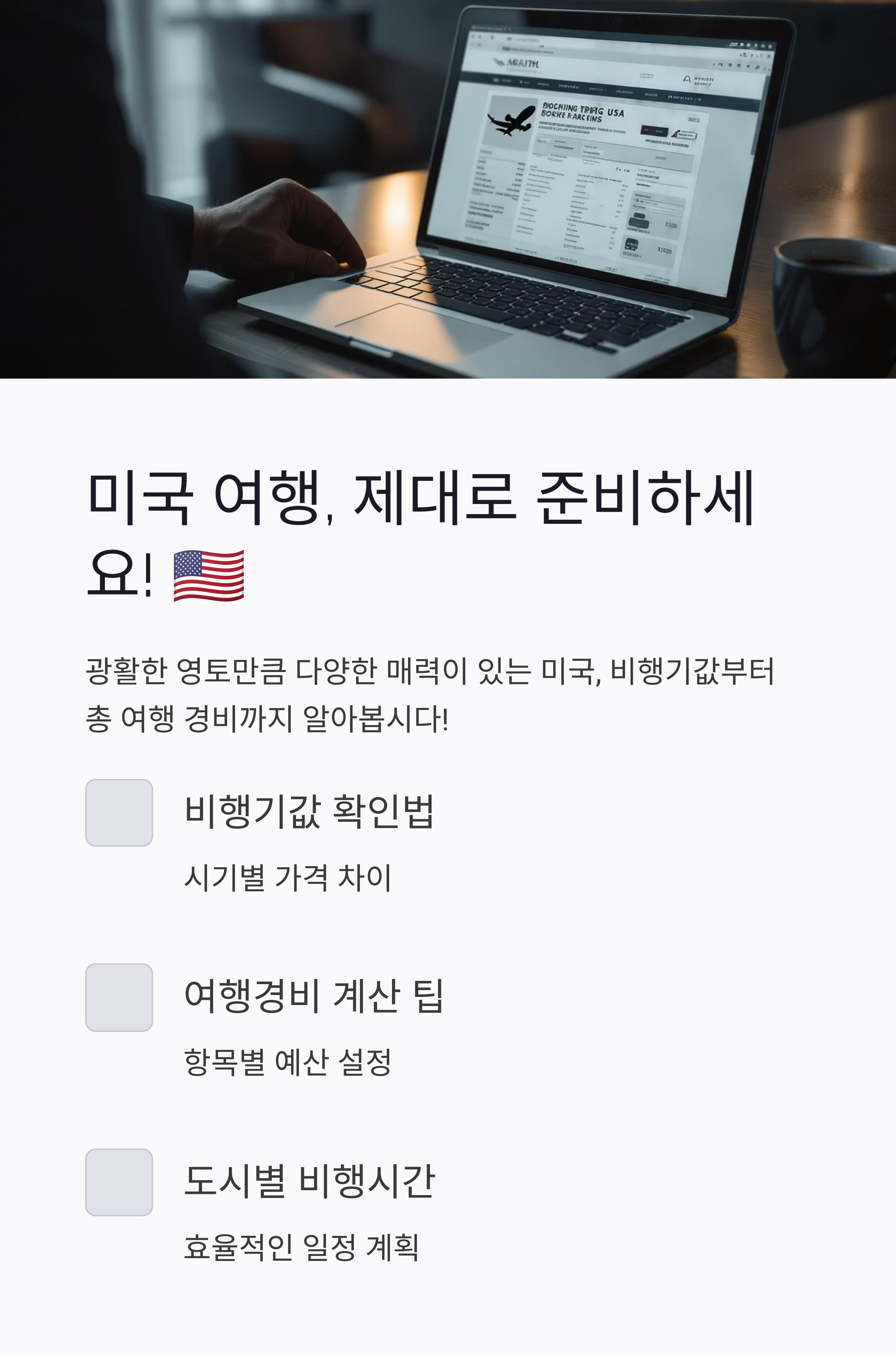 미국 여행을 계획하면서 가장 먼저 신경 써야 할 건 비행기표 예약 타이밍과 예산 계획입니다.