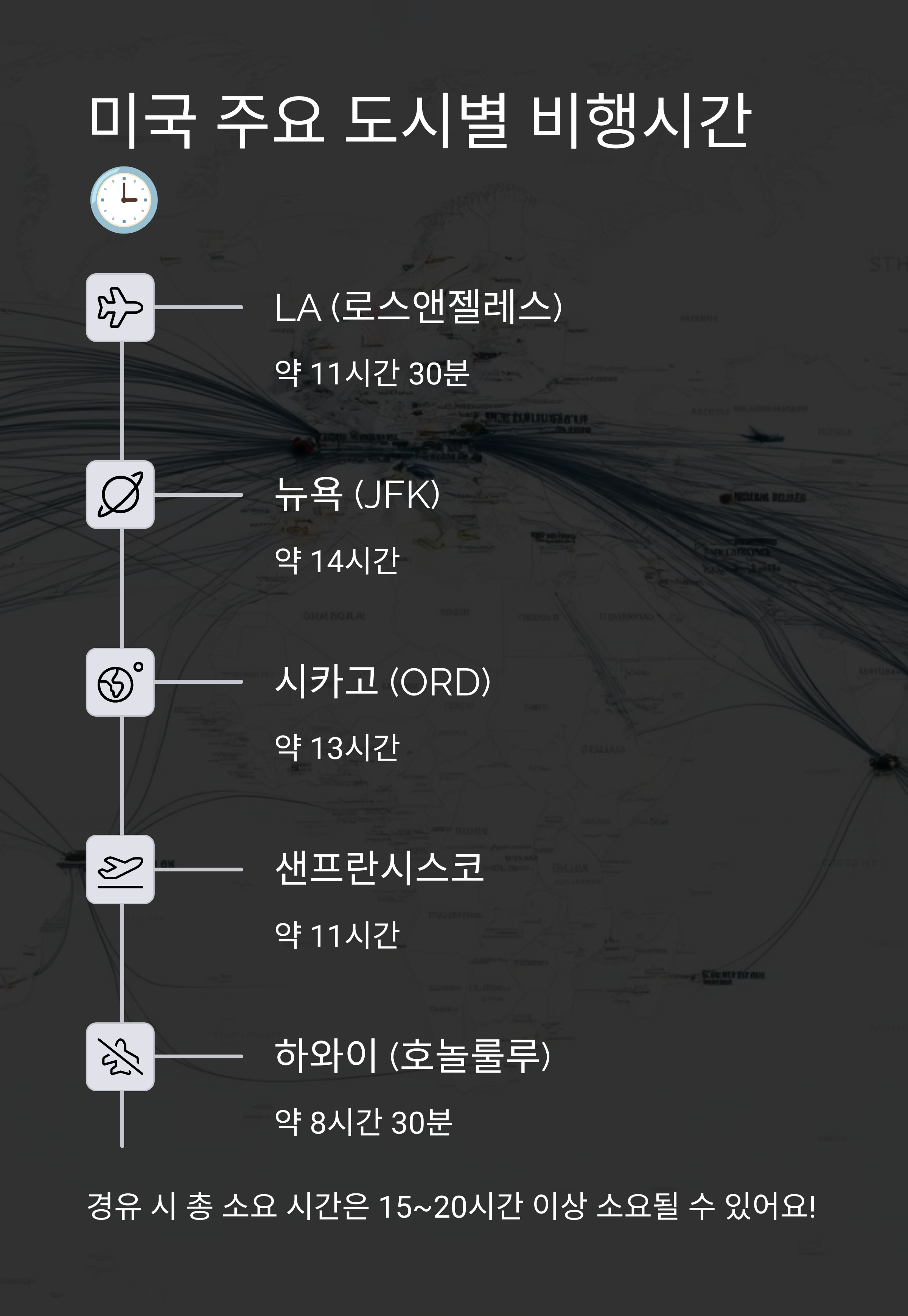 🕒 3. 미국 주요 도시별 비행시간
