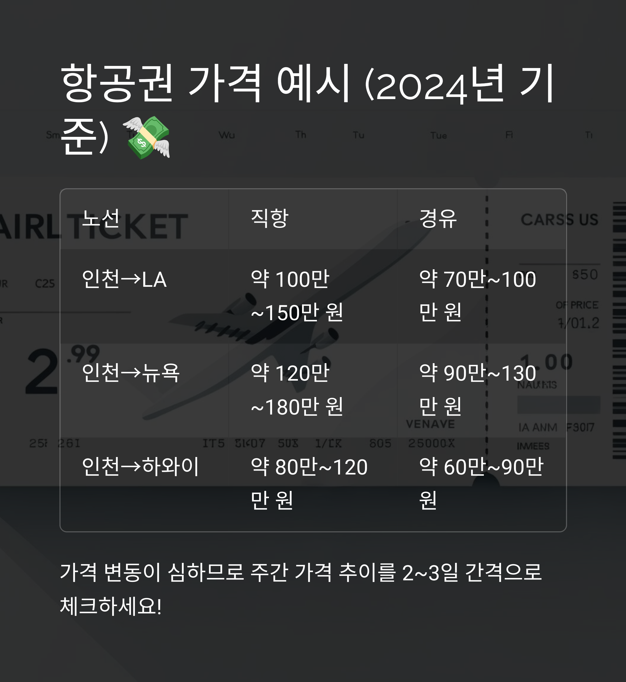 📌 비행기값은 언제, 어디서 예약하느냐에 따라 달라져요!