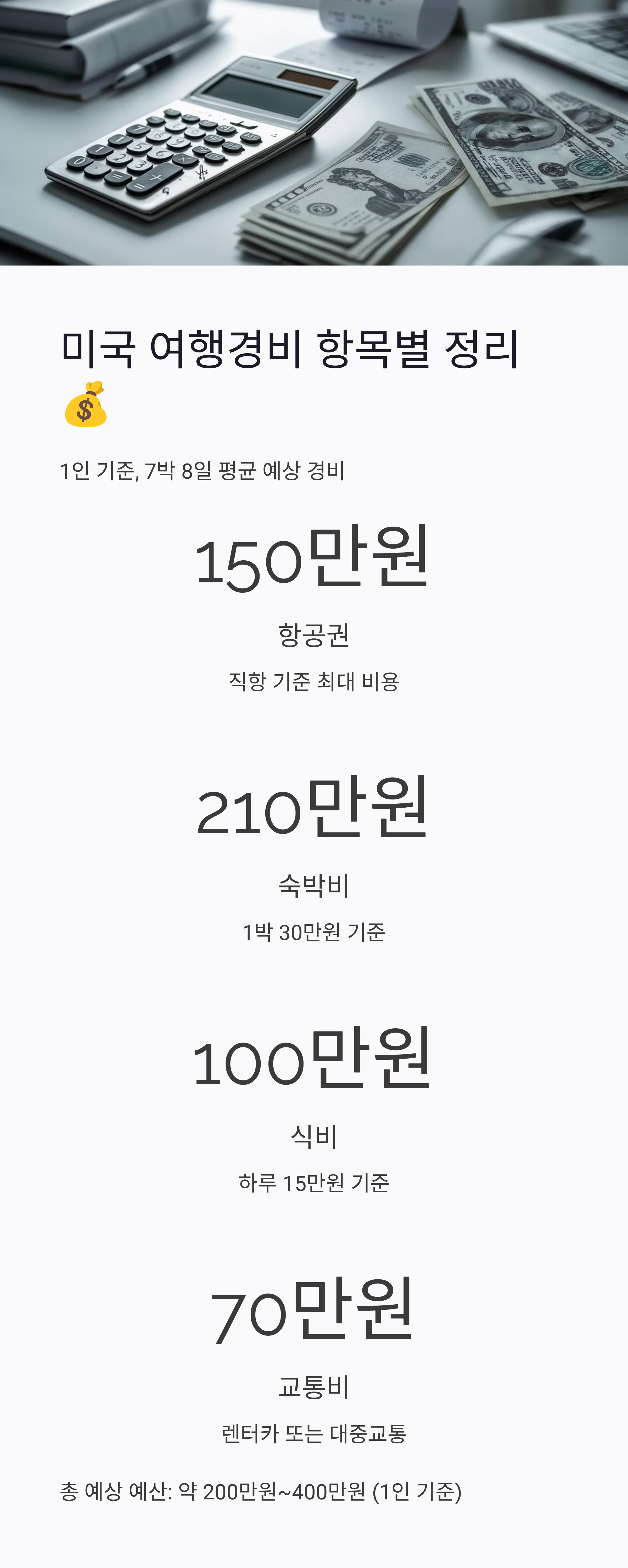 💸 4. 미국 여행경비 – 항목별로 나눠서 확인!