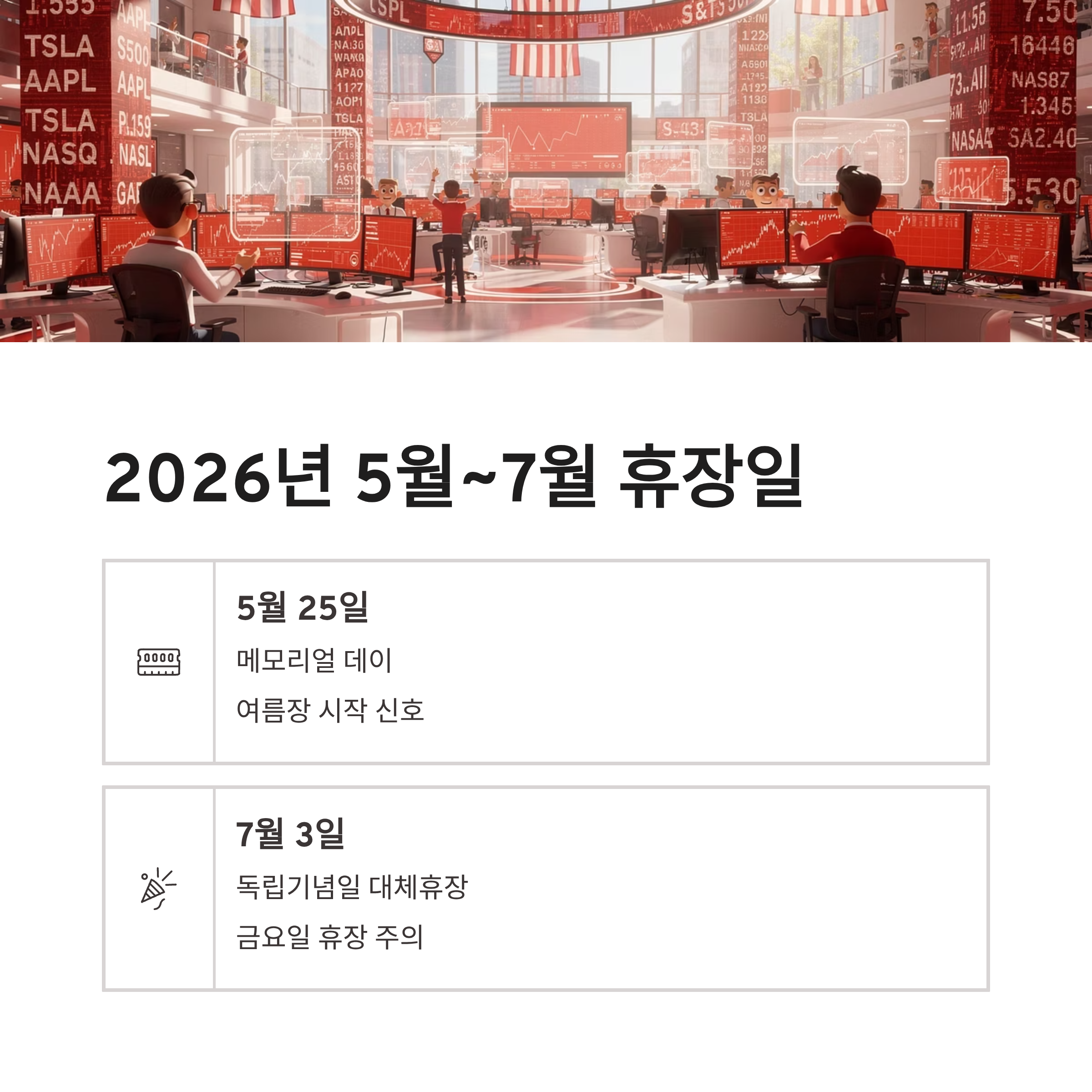 #미국증시휴장일2026 #미국주식휴장일 #미국증시일정 #미국주식투자 #해외주식일정 #뉴욕증시휴장 #나스닥휴장일 #미국증시조기폐장 #미국주식초보 #해외주식필수정보 #투자일정관리 #미국주식팁 #2026주식시장 #미국증시체크 #미국주식캘린더