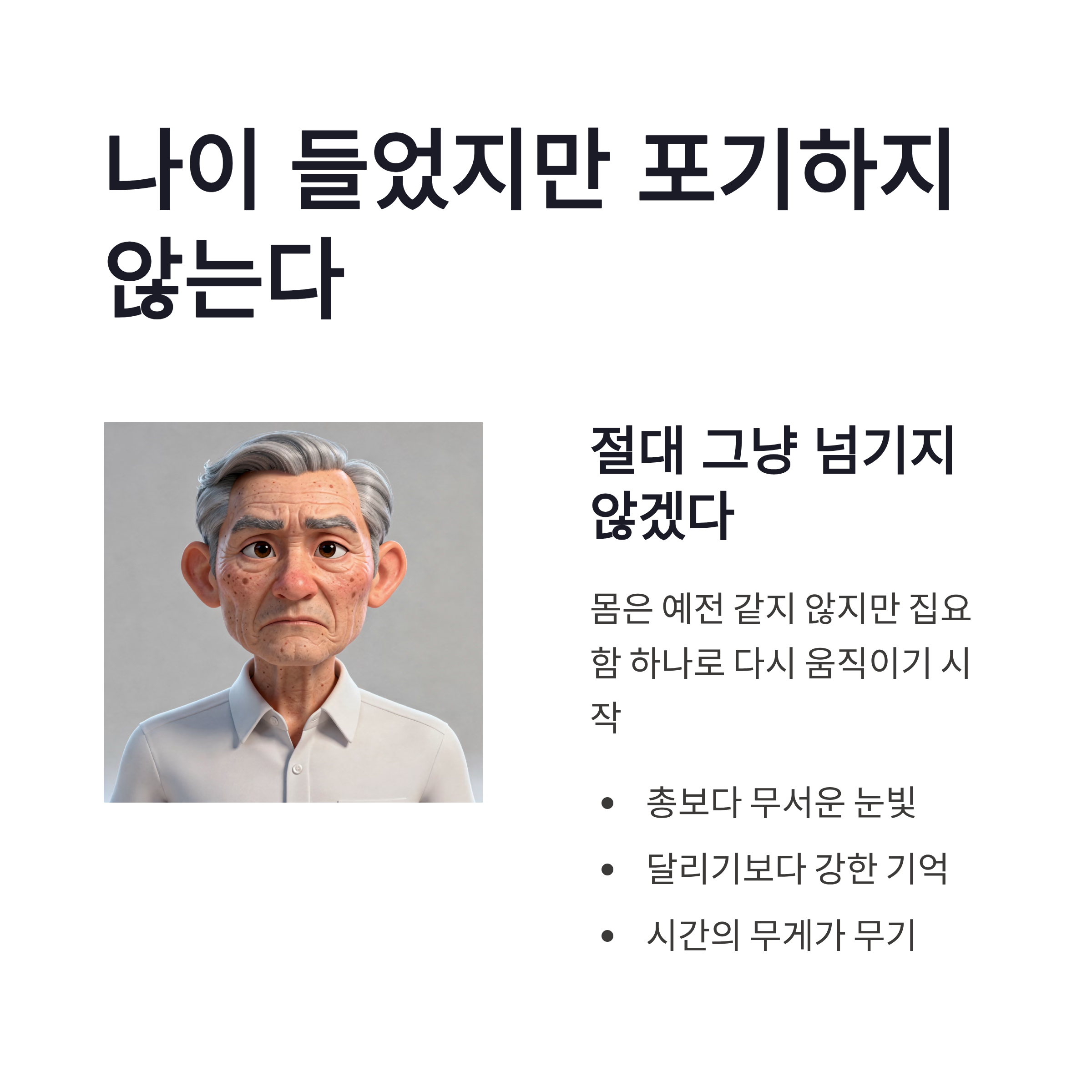 | 캐릭터 | 완벽하지 않은 노인 | 공감도 높음 |