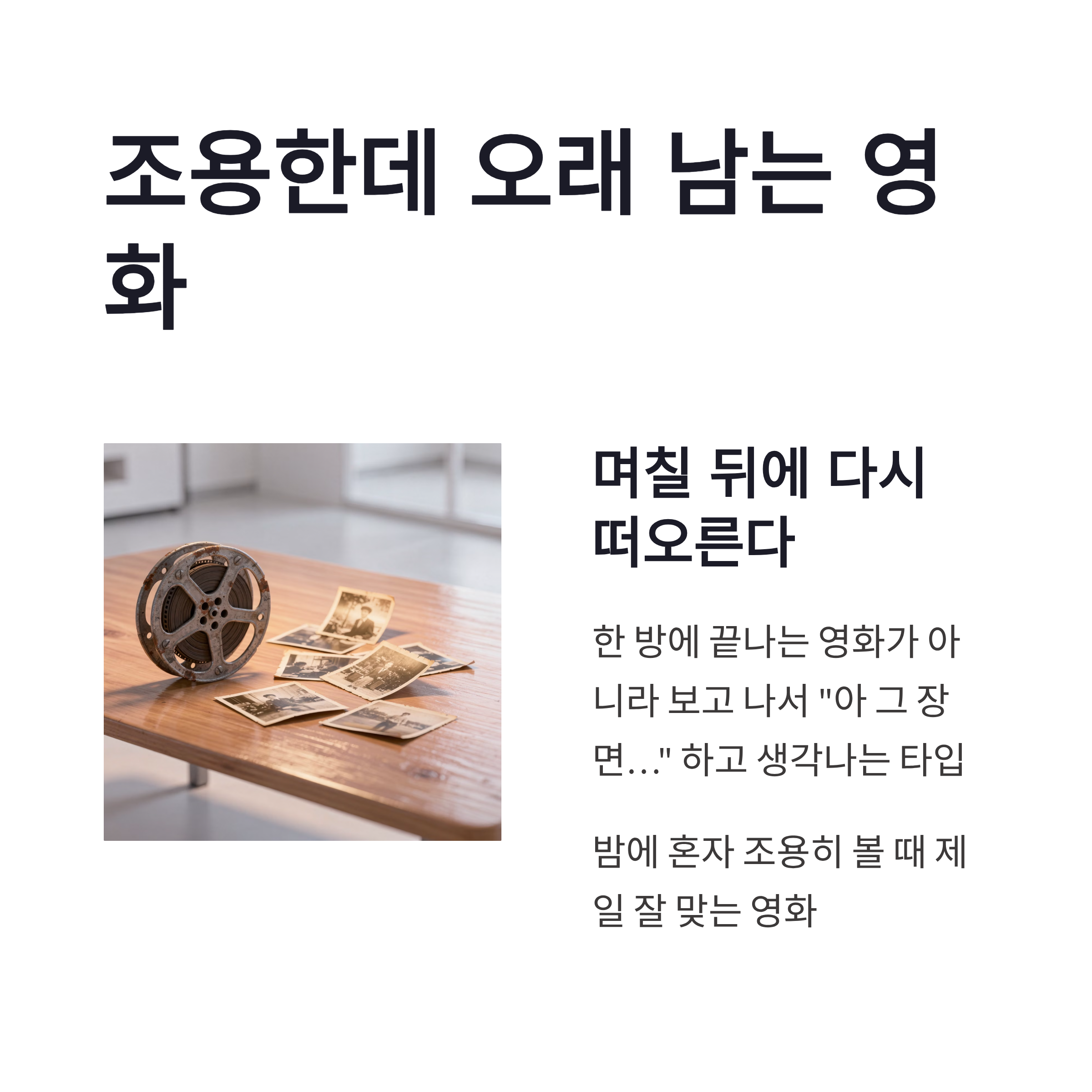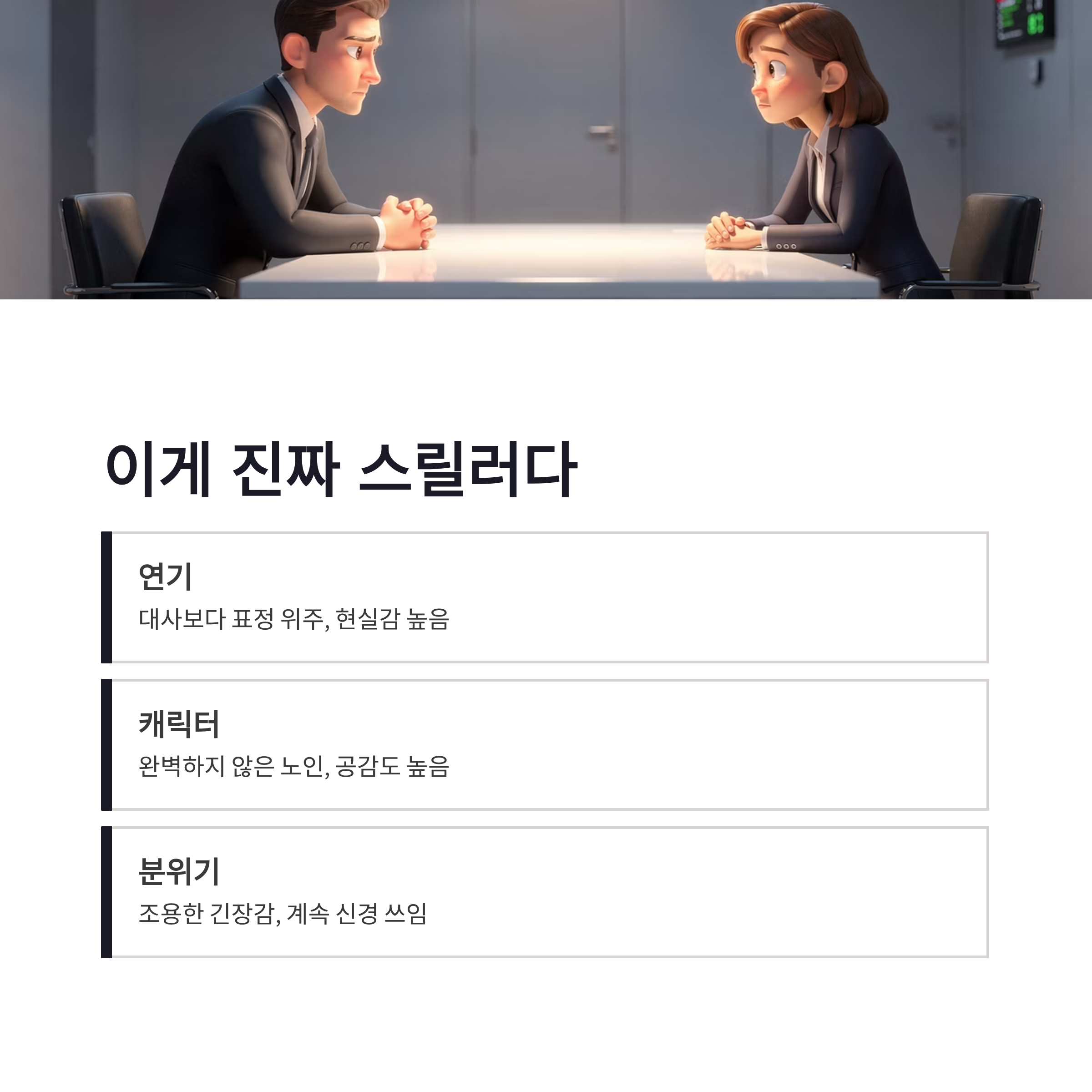 특히 성동일 캐릭터는 “정의감”보다는 후회와 집착에 가까운 감정이 느껴져서 더 현실적이었구요. 연관해서 많이들 검색하는 키워드가 *노인 스릴러, 한국 범죄영화, 실화 같은 영화* 이런 쪽이던데, 진짜 그 말이 딱 맞아요. 화려하진 않은데 계속 생각납니다.