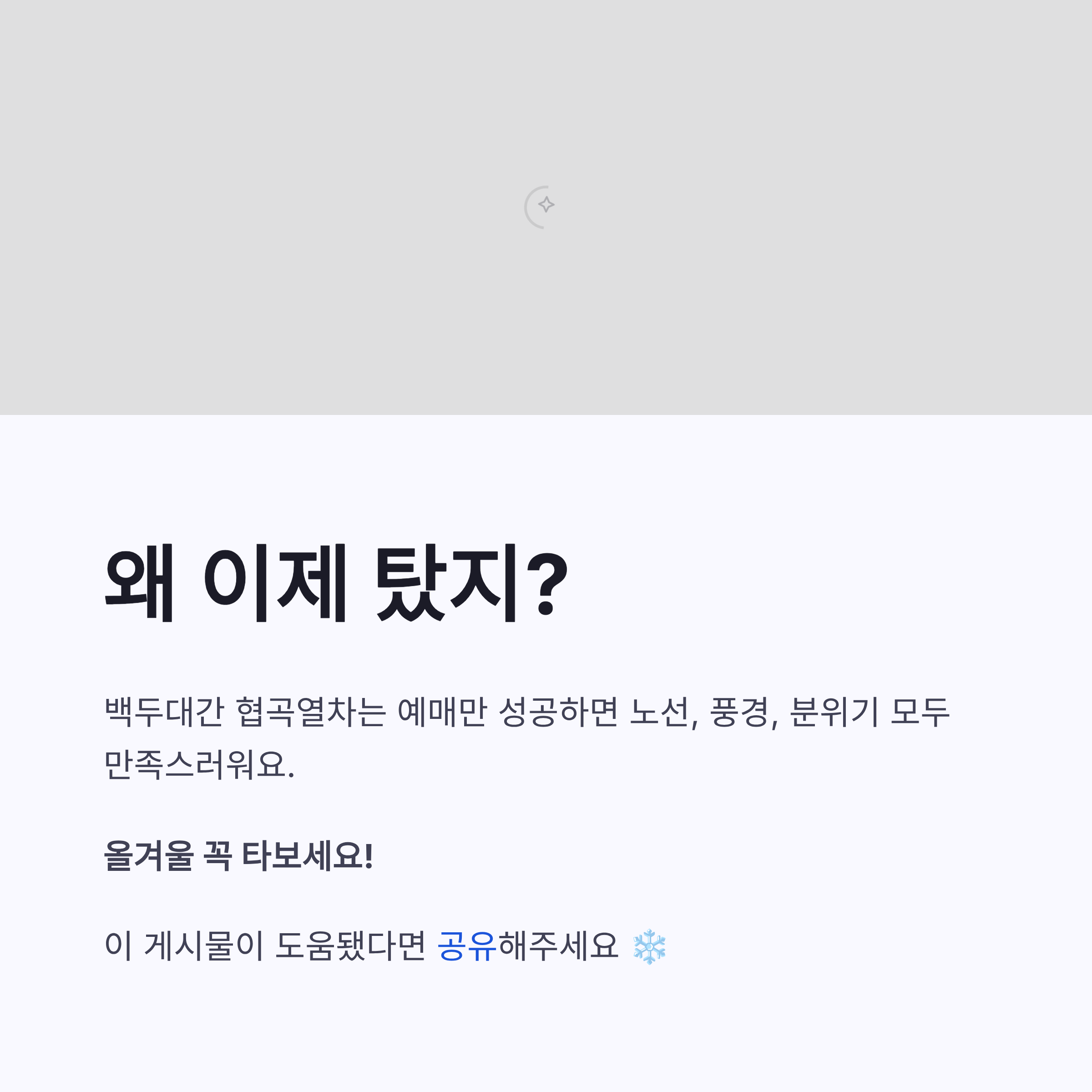 정리해보면 백두대간 협곡열차 예매 방법이 여행의 80%를 좌우한다고 봐도 과언 아니에요. 예매만 성공하면 노선, 풍경, 분위기까지 전부 만족스러웠거든요. 겨울철에는 특히 설경 덕분에 감정이 괜히 말랑해지기도 하구요 ㅎㅎ 백두대간 협곡열차 노선 자체가 짧아서 부담도 없고, 하루 일정으로도 충분했어요. 올겨울이나 다음 겨울 여행지 고민 중이라면, 이 열차 한 번쯤은 꼭 추천하고 싶네요. 저처럼 “왜 이제 탔지?” 이런 말 나오실지도 몰라요.