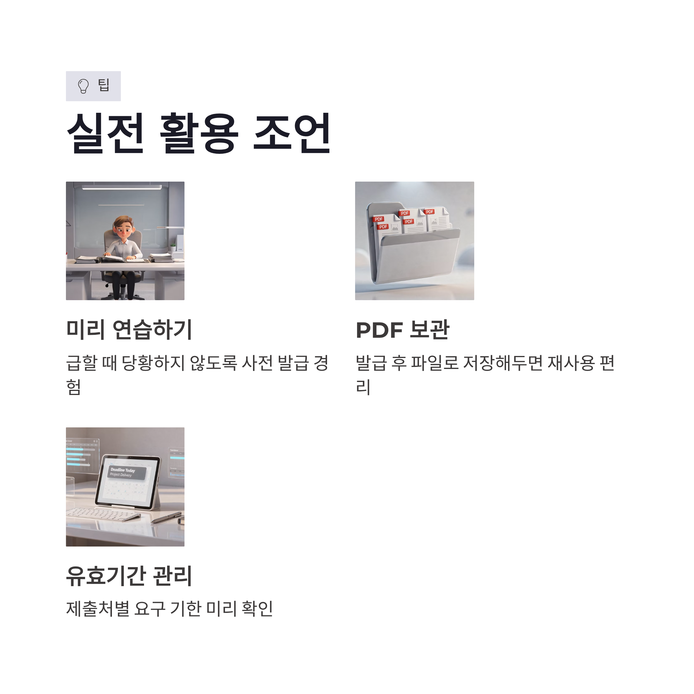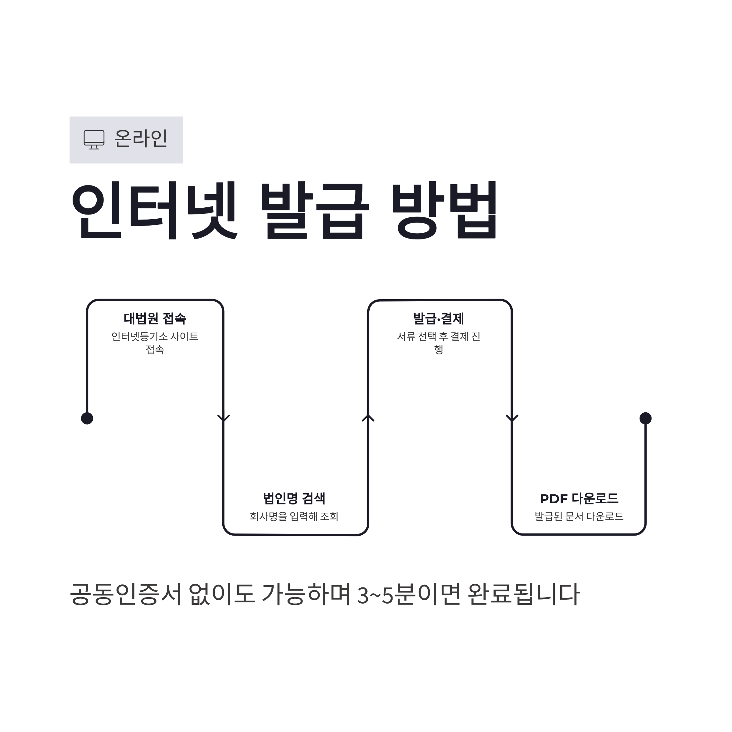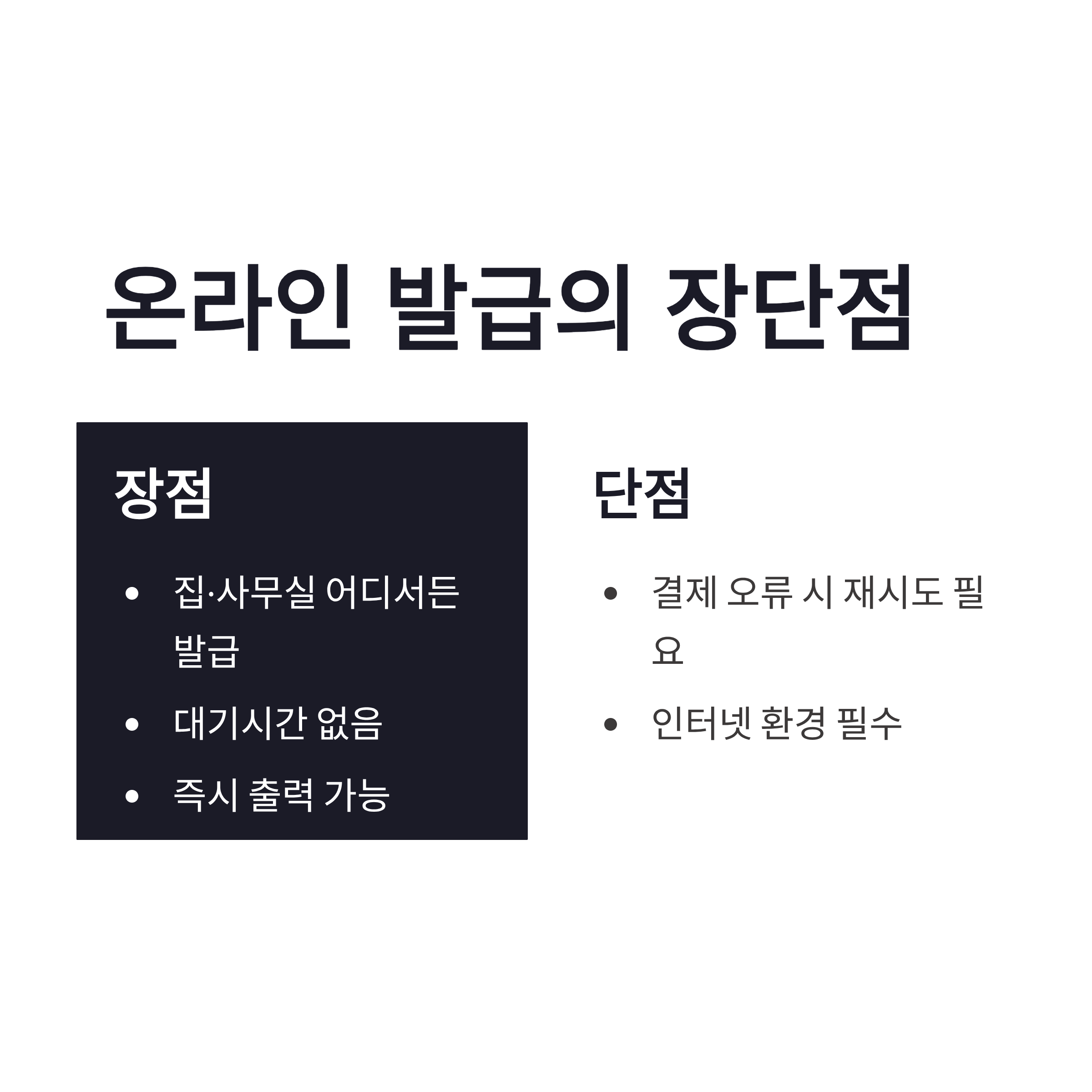 * 집·사무실 어디서든 발급 가능 * 대기시간 없음 * 즉시 출력 가능