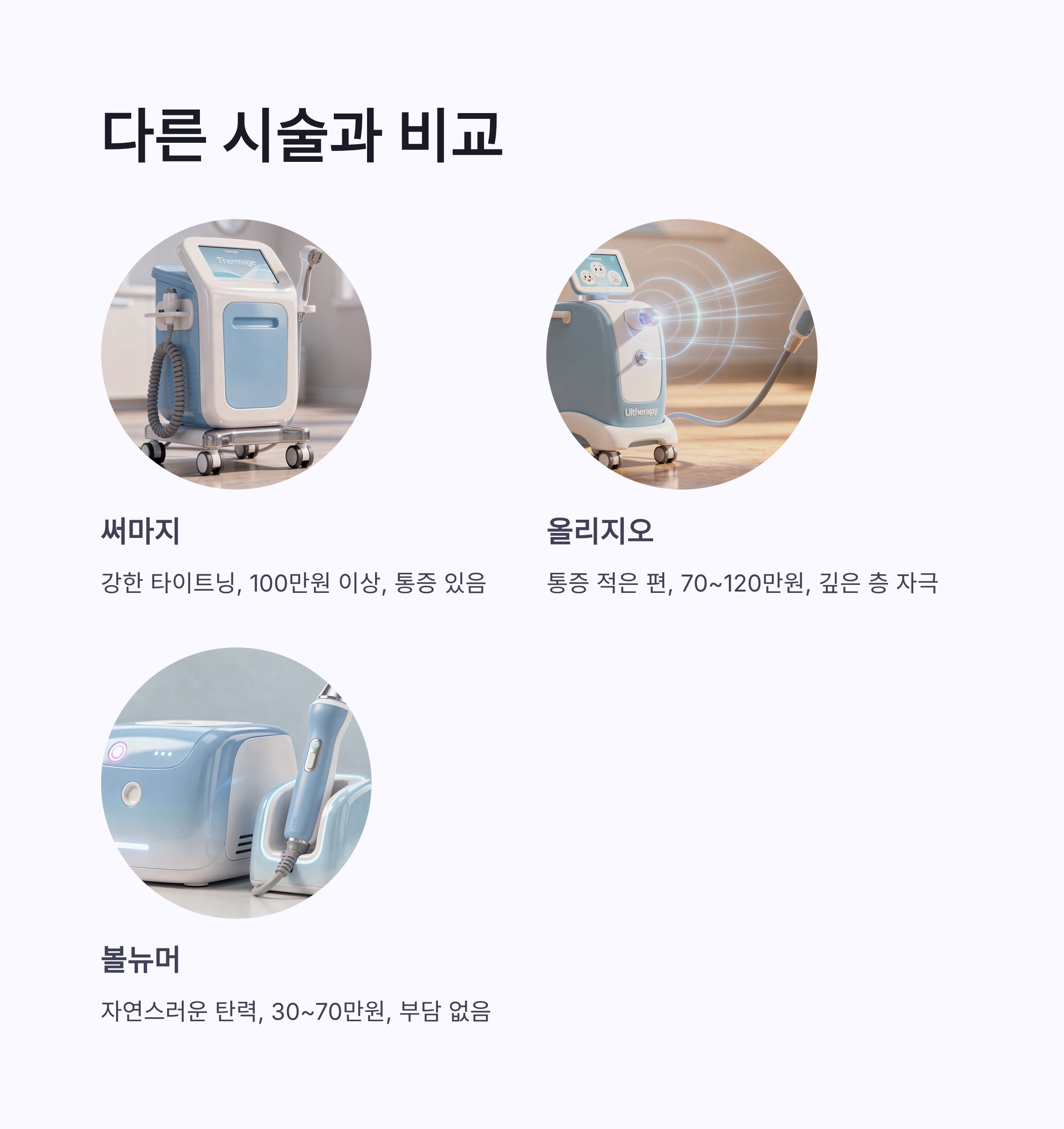 | 써마지 | 100만 원 이상 | 강한 타이트닝 |