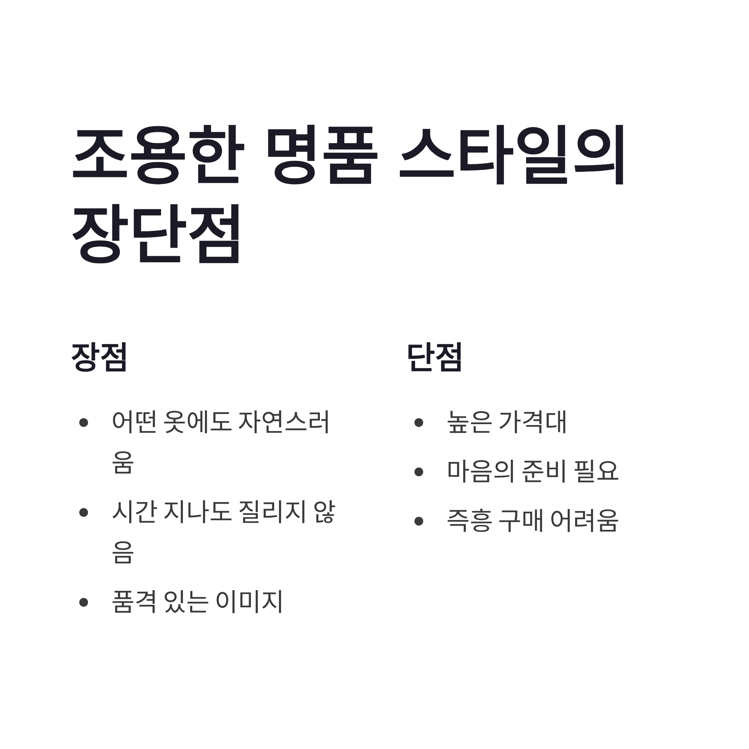 | 분위기 | 캐주얼+고급 | 부담 없는 럭셔리 |