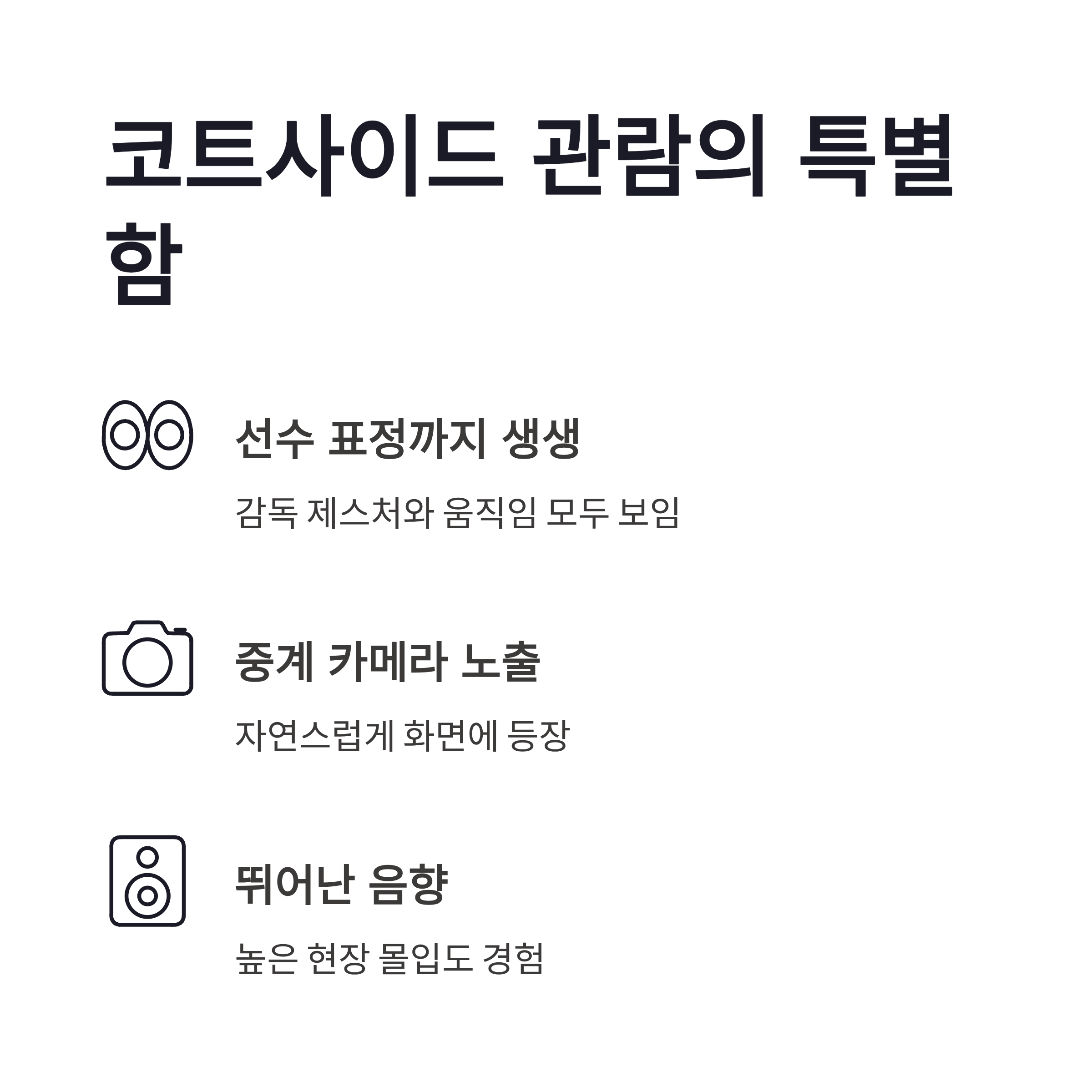 | 좌석 | 코트사이드 | 선수 움직임 생생 |