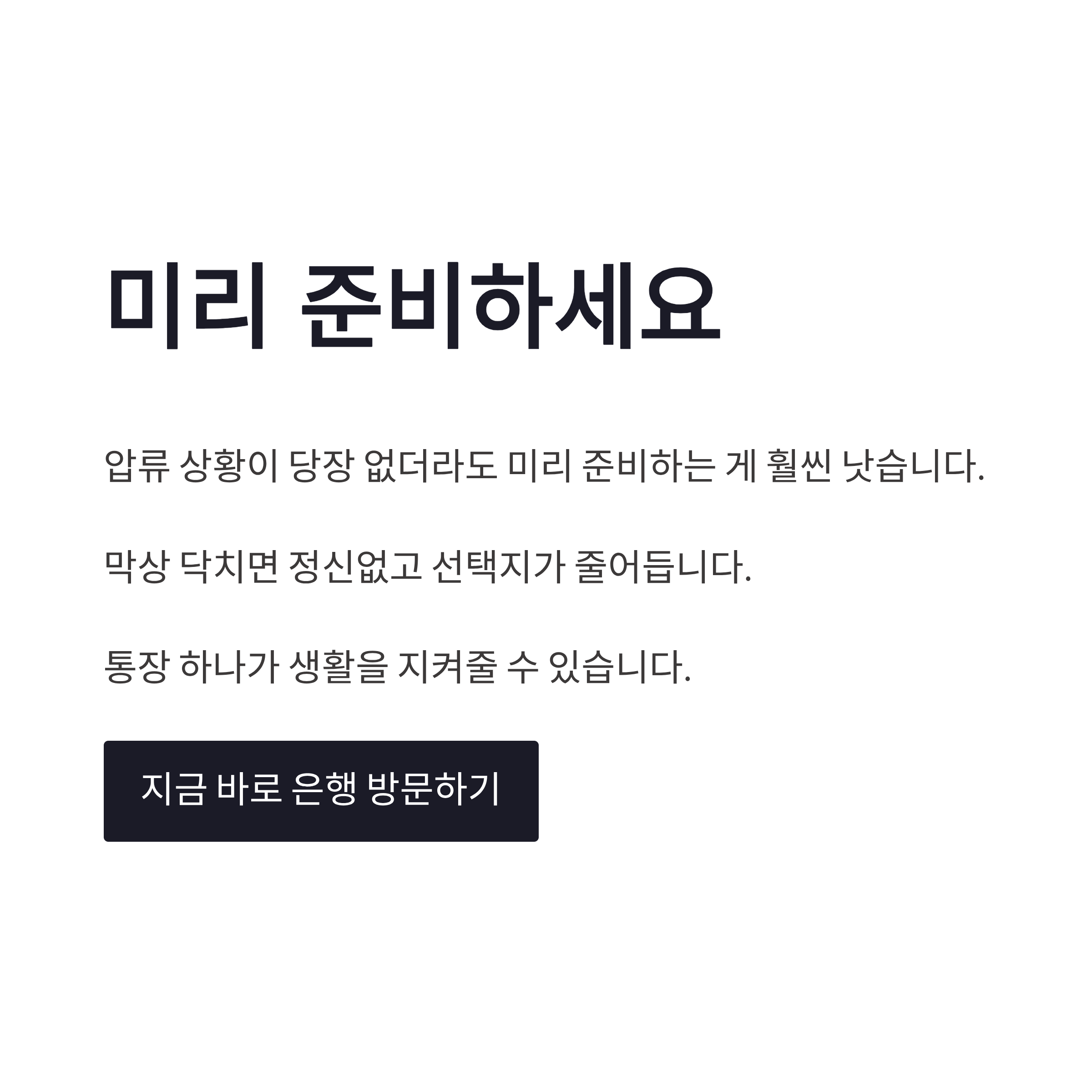 그래도 개인적으로는, 요즘 같은 시기에 생계비 통장 하나 없는 게 더 불안하더라구요. 저는 이 통장 만들어놓고 나서 괜히 마음이 좀 편해졌습니다. 괜히 “최악은 피할 수 있겠구나” 이런 느낌이랄까…