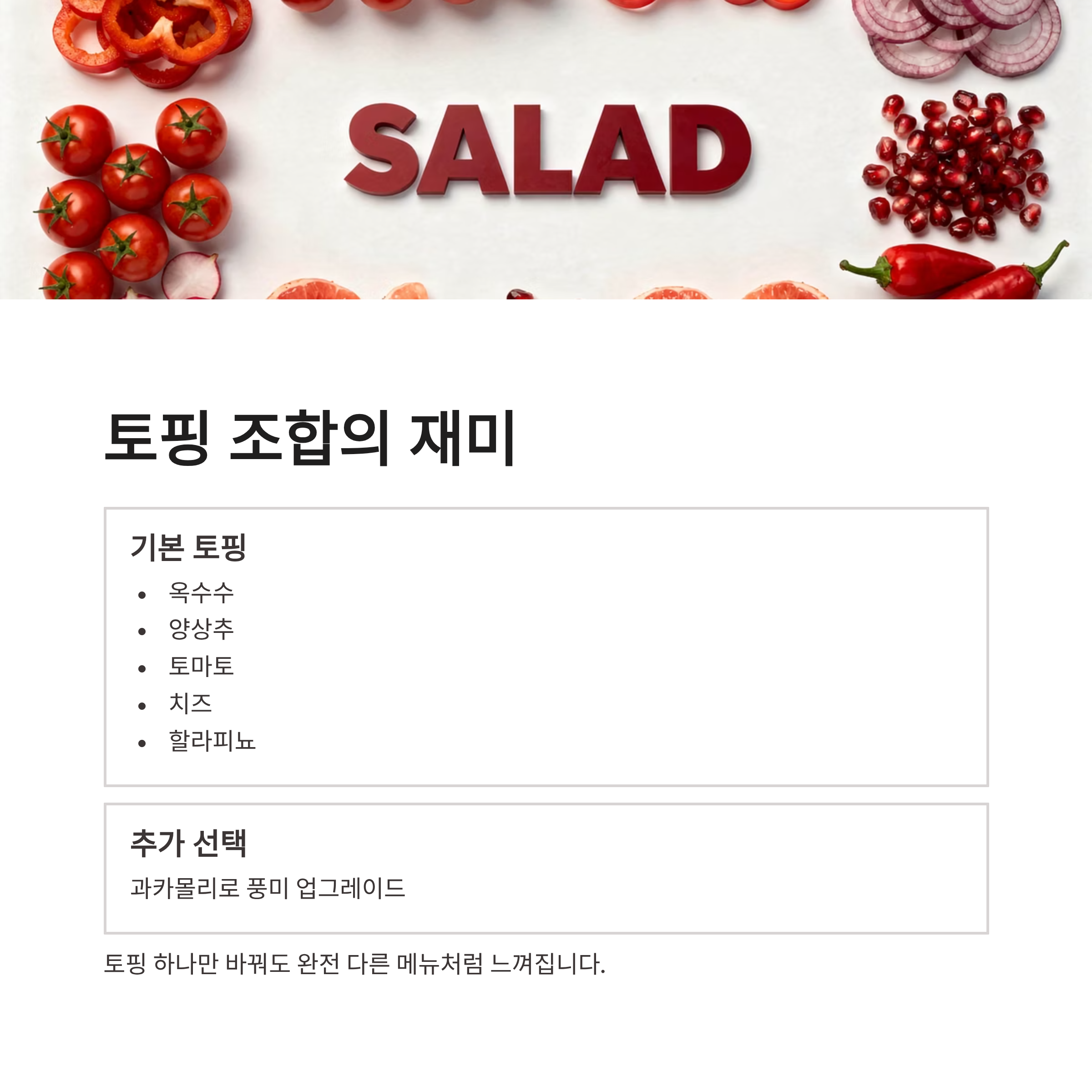 서브웨이 타코 샐러드 구성과 단백질 옵션 정리