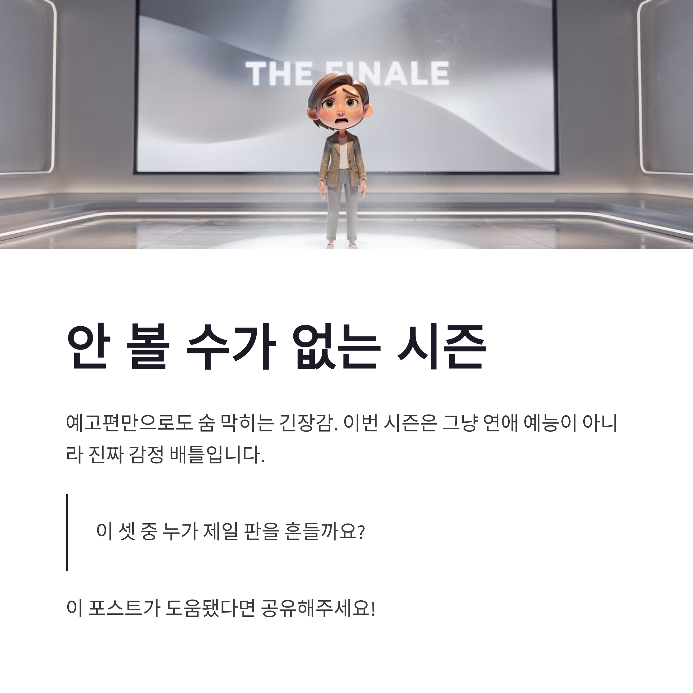 정리해보면 솔로지옥 시즌5 출연진 중 김민지 김고은 최미나수 이 3인방은 성향도, 에너지 방향도 다 다른데 묘하게 잘 섞였어요. 그래서 예고편만으로도 숨 막힌다는 말이 나온 듯하구요. 개인적으로는 이번 시즌, 그냥 연애 예능이 아니라 진짜 감정 배틀 느낌이라 더 기대 중입니다. 여러분은 이 셋 중 누가 제일 판을 흔들 것 같으신가요? ㅎㅎ
