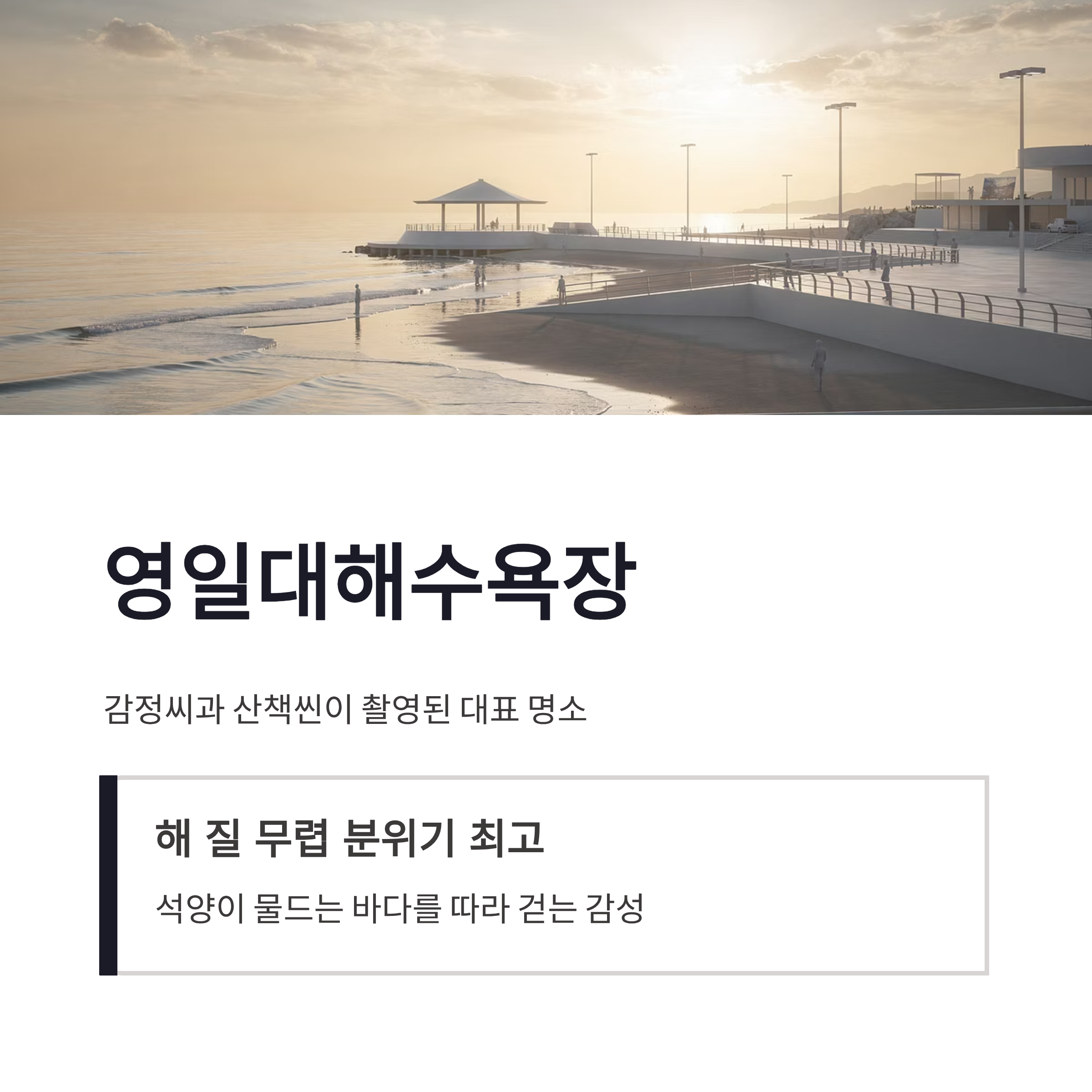 | 영일대해수욕장 | 감정씬, 산책씬 | 해 질 무렵 분위기 최고 |