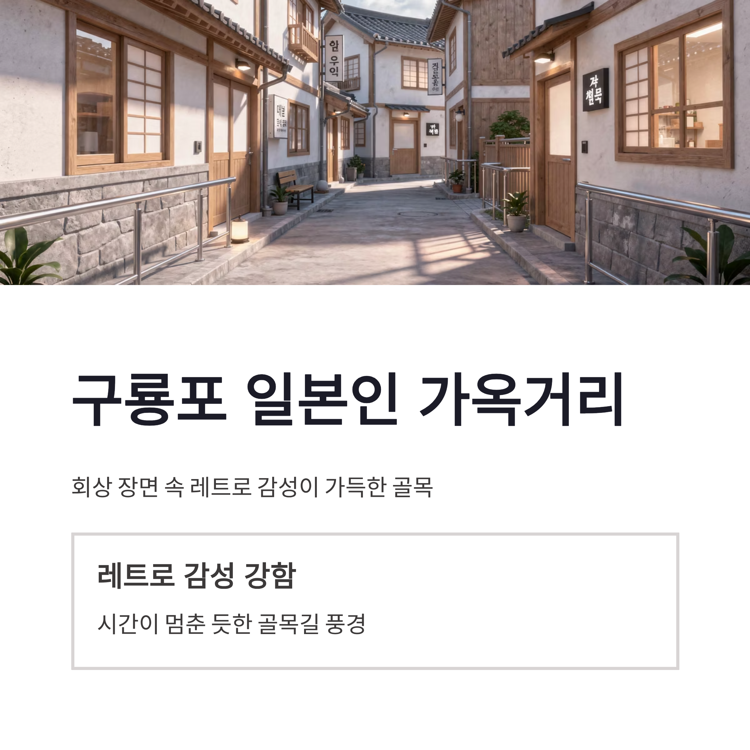 | 구룡포 일본인 가옥거리 | 회상 장면 | 레트로 감성 강함 |