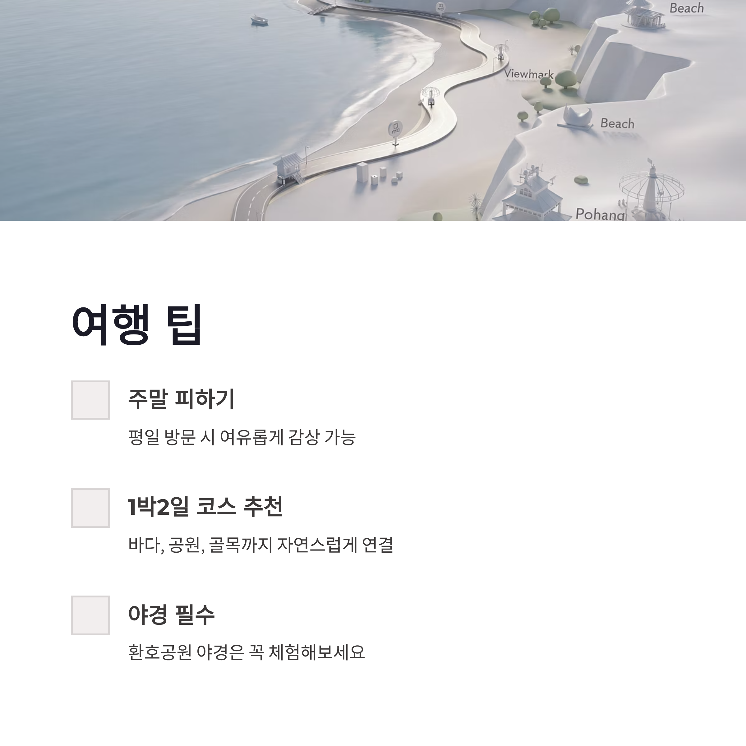 제가 직접 정리해본 스프링피버 촬영지 포항 핵심 스폿은 아래 정도였어요.