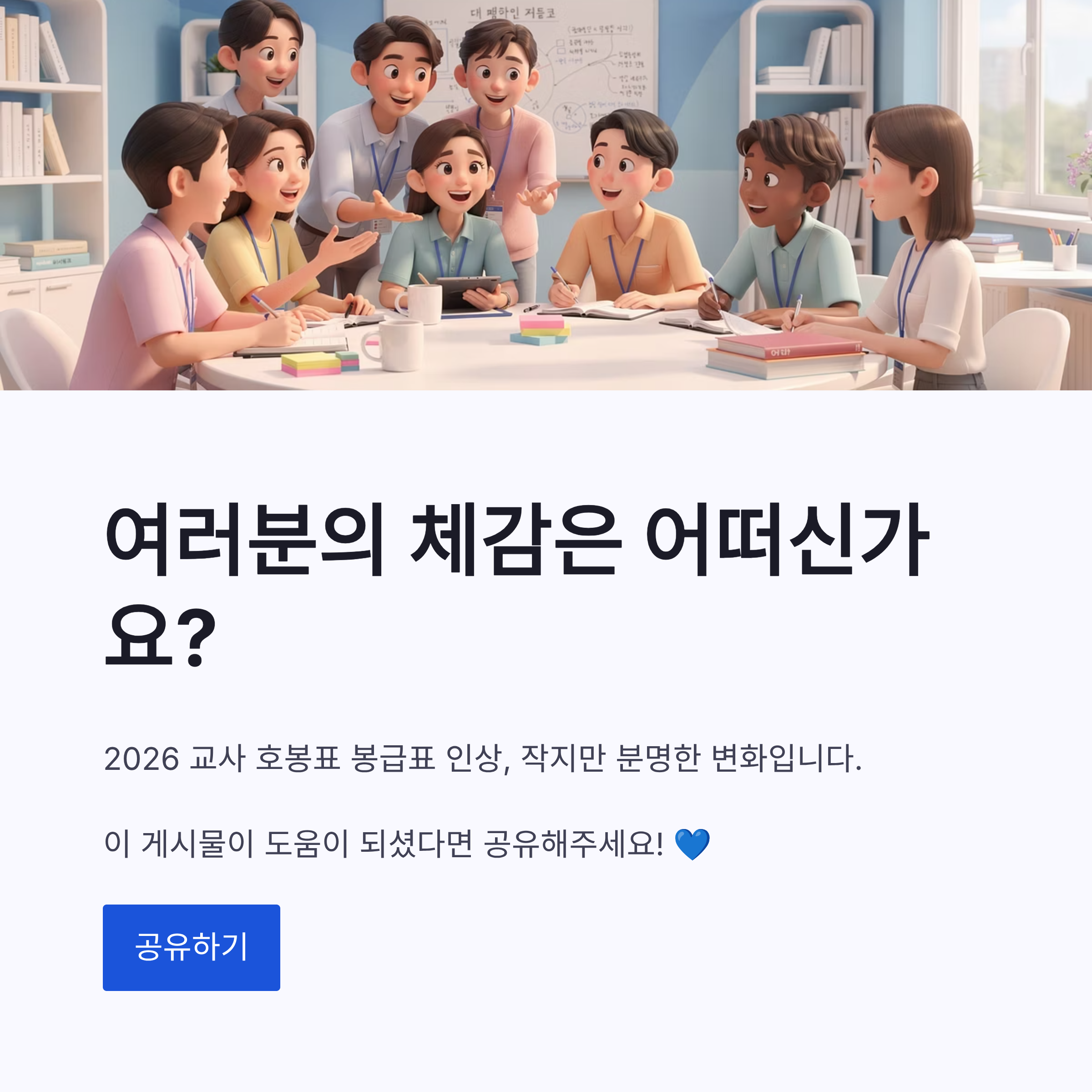 #2026교사호봉표 #2026교사봉급표 #교사월급 #교사실수령액 #교사급여인상 #공무원봉급표 #교직수당 #담임수당 #정근수당 #교사연봉 #초임교사월급 #교사호봉 #교육공무원 #교사급여변화 #2026공무원월급