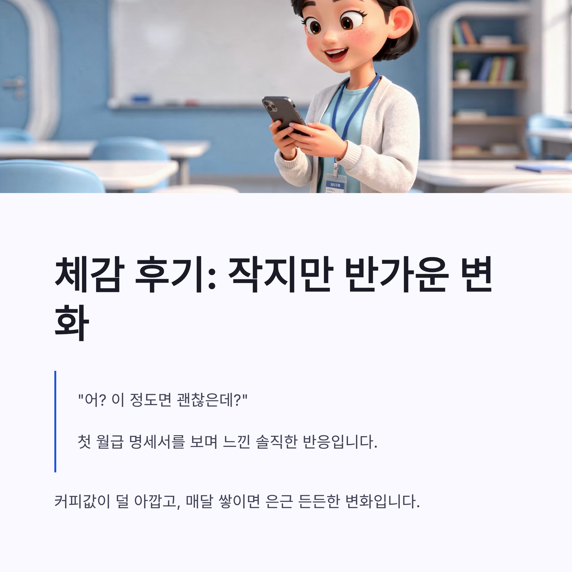 단순 계산만 해도 월 12만 원 이상 차이가 납니다. 여기에 정근수당, 교직수당, 담임수당 같은 항목이 더해지면 실제 체감은 조금 더 커지구요. 다만 실수령액은 소득세·연금·건강보험이 빠지면서 줄어들긴 합니다. 제 경우엔 실수령 기준으로 한 7~8만 원 정도 늘어난 느낌이었어요. 그래도 2026 교사 호봉표 봉급표 덕분에 커피값은 덜 아깝더라구요ㅋㅋ