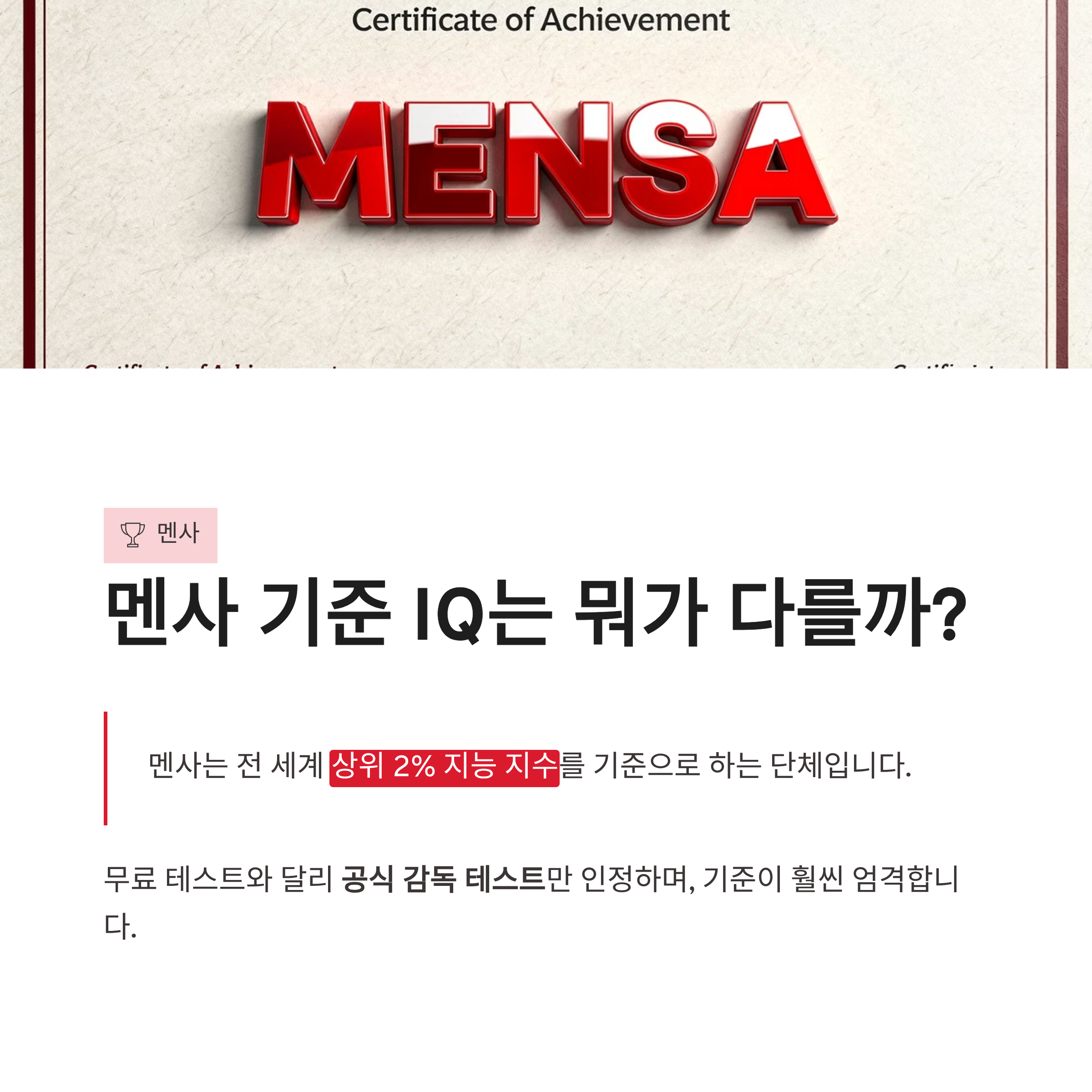 | 멘사 기준 | 약 130 이상 | 상위 2% 지능 |