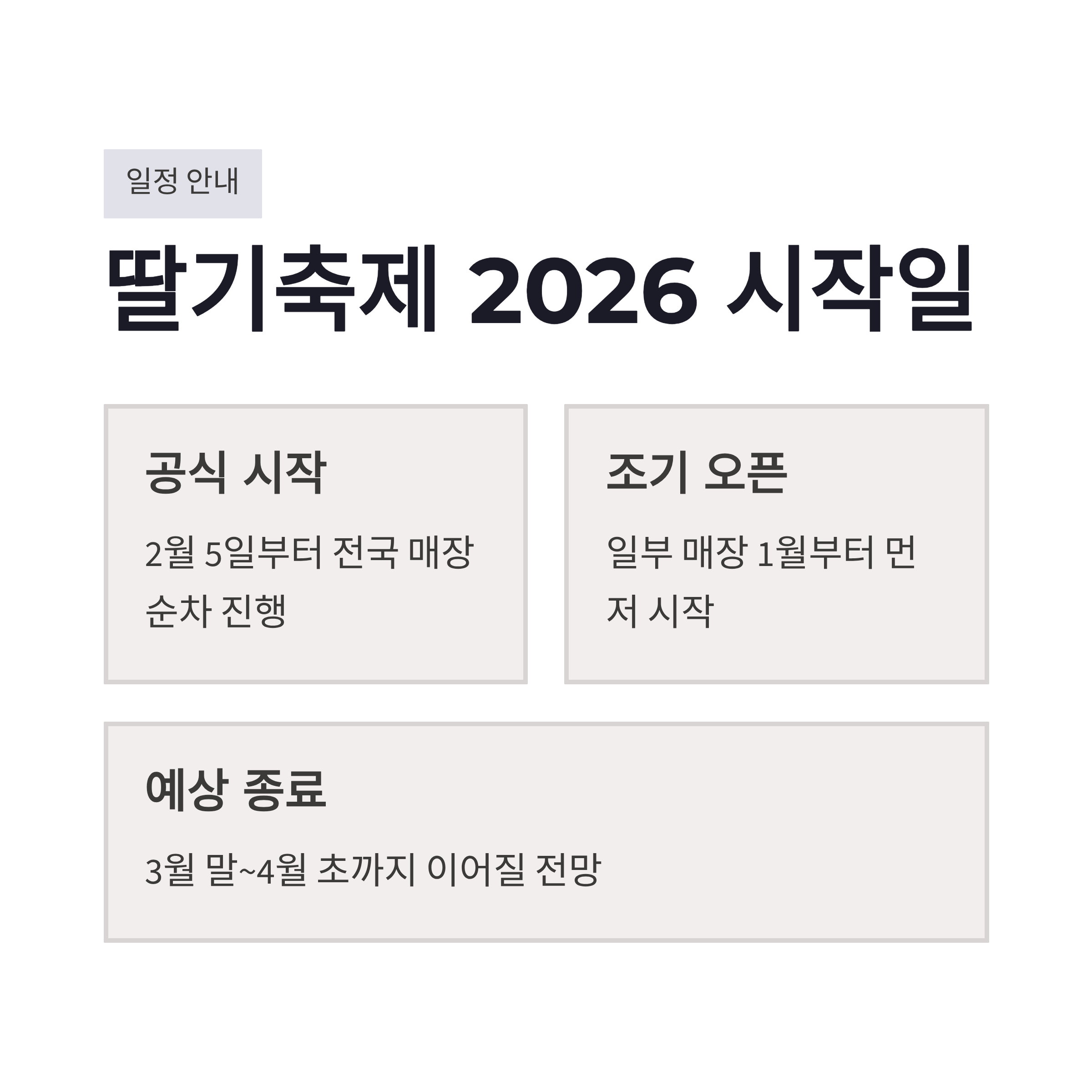 해마다 초봄만 되면 괜히 마음이 간질간질해지는데요. 그럴 때 딱 떠오르는 게 바로 애슐리 딸기축제 2026 일정이더라구요. 올해도 어김없이 딸기 시즌이 열렸고, 공식적으로는 2월 5일부터 전국 매장 순차 진행입니다. 근데 재미있는 건요, 이미 몇몇 매장은 1월부터 살짝 먼저 딸기 디저트를 풀기 시작했더라구요. 마곡 매장은 1월 22일, 시흥 프리미엄 아울렛은 1월 28일, 양평 매장은 1월 30일쯤부터 분위기가 바뀌었습니다. 저도 우연히 마곡 쪽 들렀다가 “어? 딸기 벌써?” 이런 반응 나왔구요 ㅎㅎ 애슐리 딸기축제 2026 일정은 매장별로 미세한 차이가 있어서 방문 전에 꼭 체크하는 게 좋겠더라구요. 작년 기준으로 보면 보통 3월 말~4월 초까지 이어졌던 만큼, 올해도 비슷한 흐름일 가능성이 큽니다. 딸기 좋아하시는 분들은 이 타이밍 진짜 놓치면 아쉬워요.