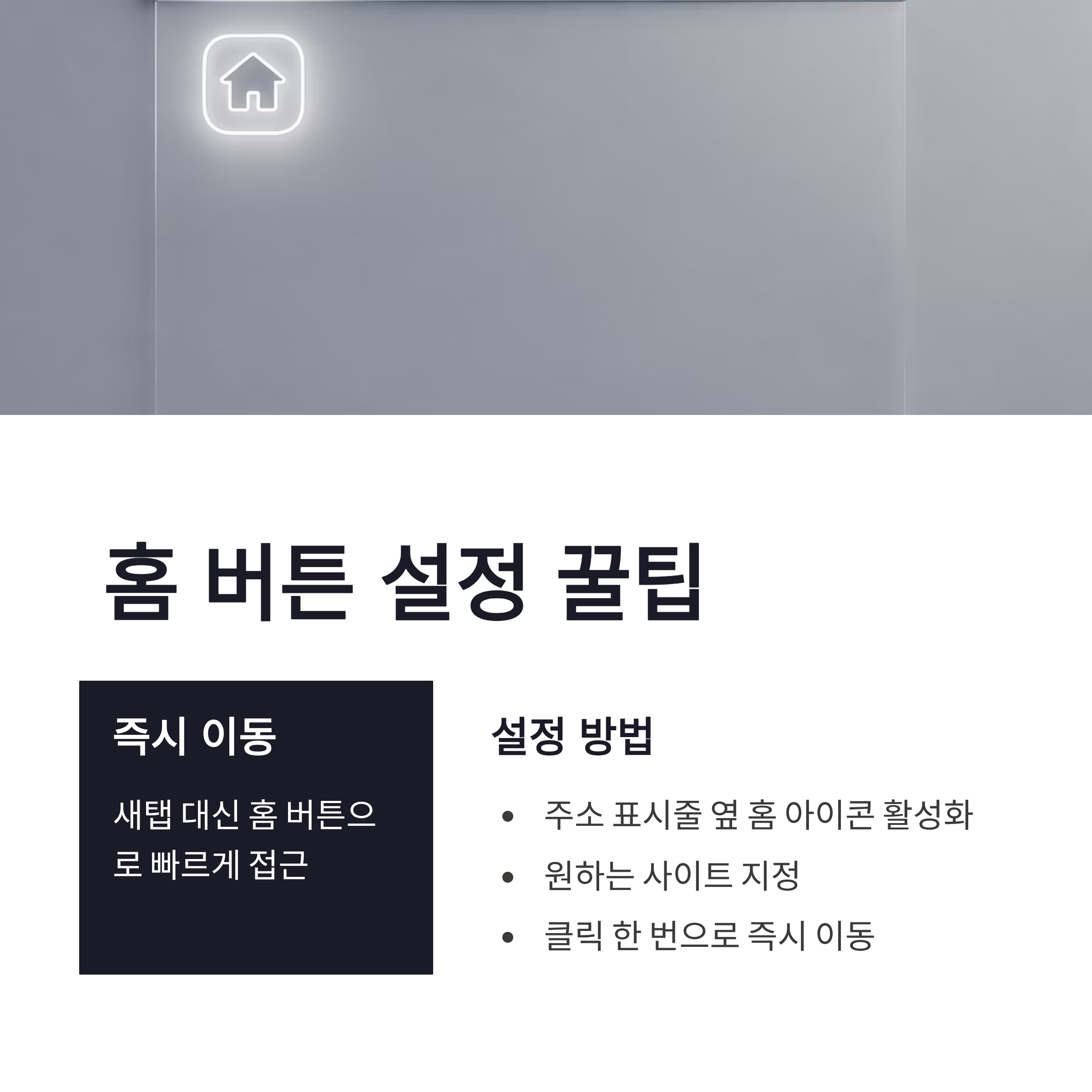 | 홈 버튼 | 상단 홈 아이콘 클릭 시 이동 | 자주 쓰는 사이트 고정 |