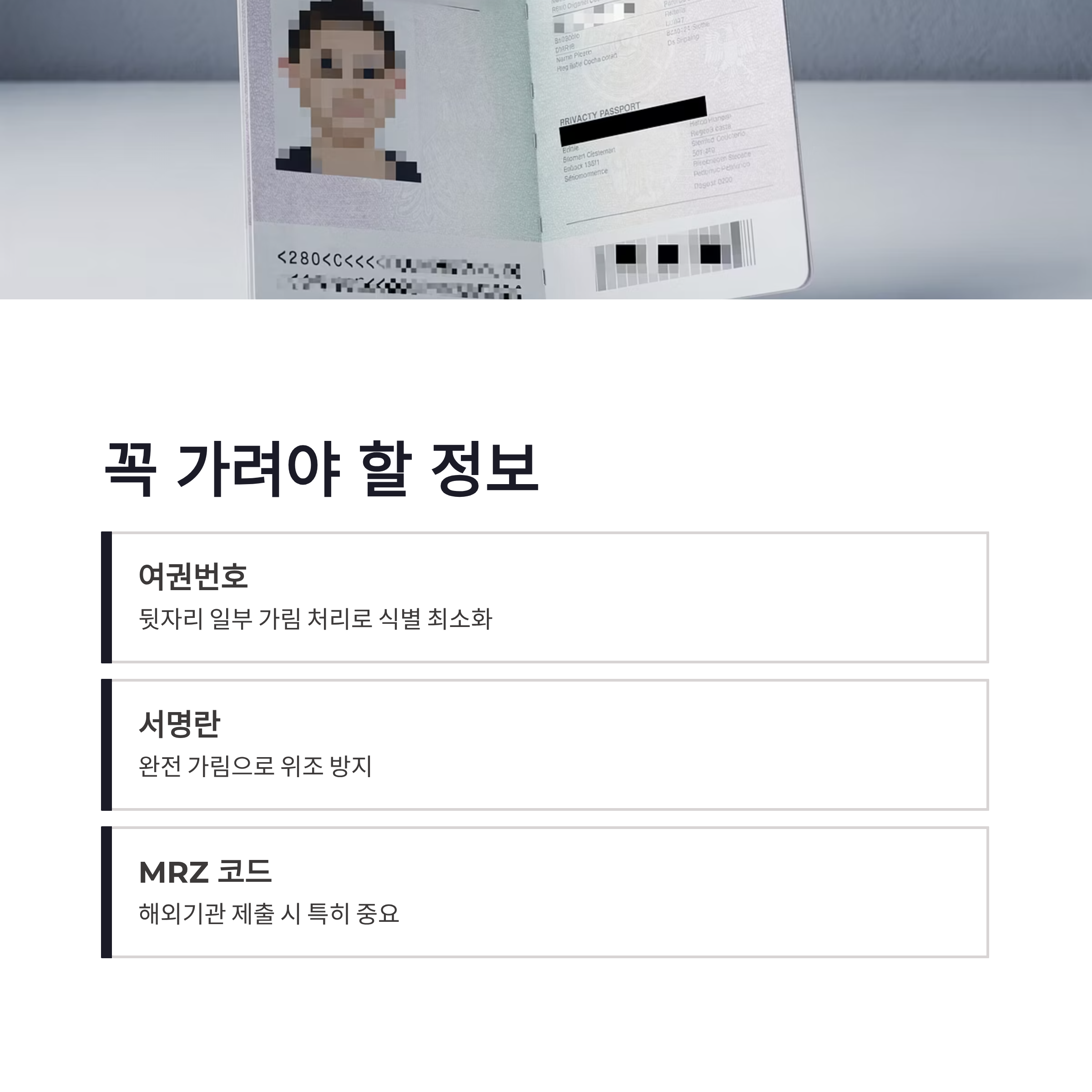 | MRZ 코드 | 가림 권장 | 해외기관 특히 중요 |