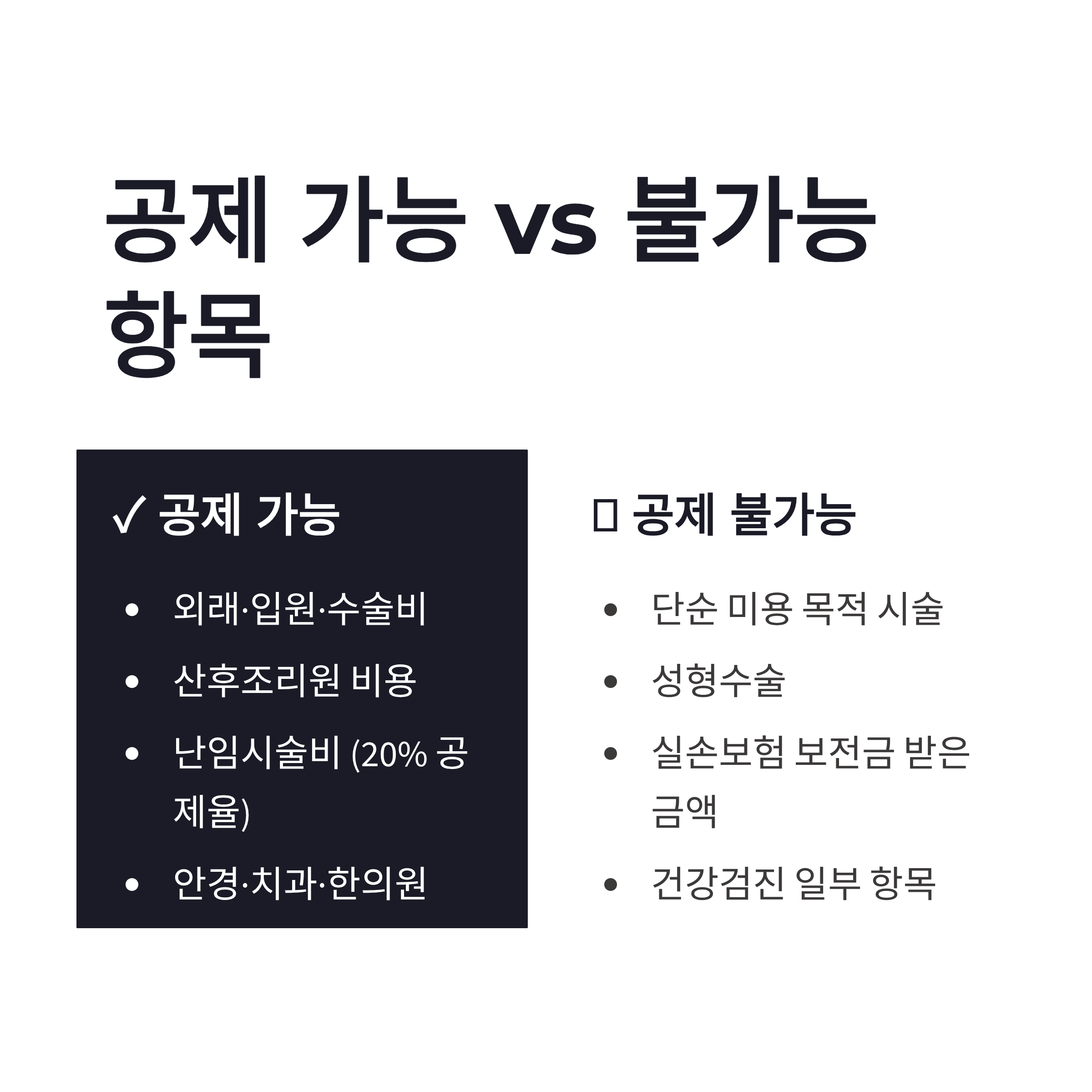| 본인 병원비 | 외래·입원·수술비 | 가능 |