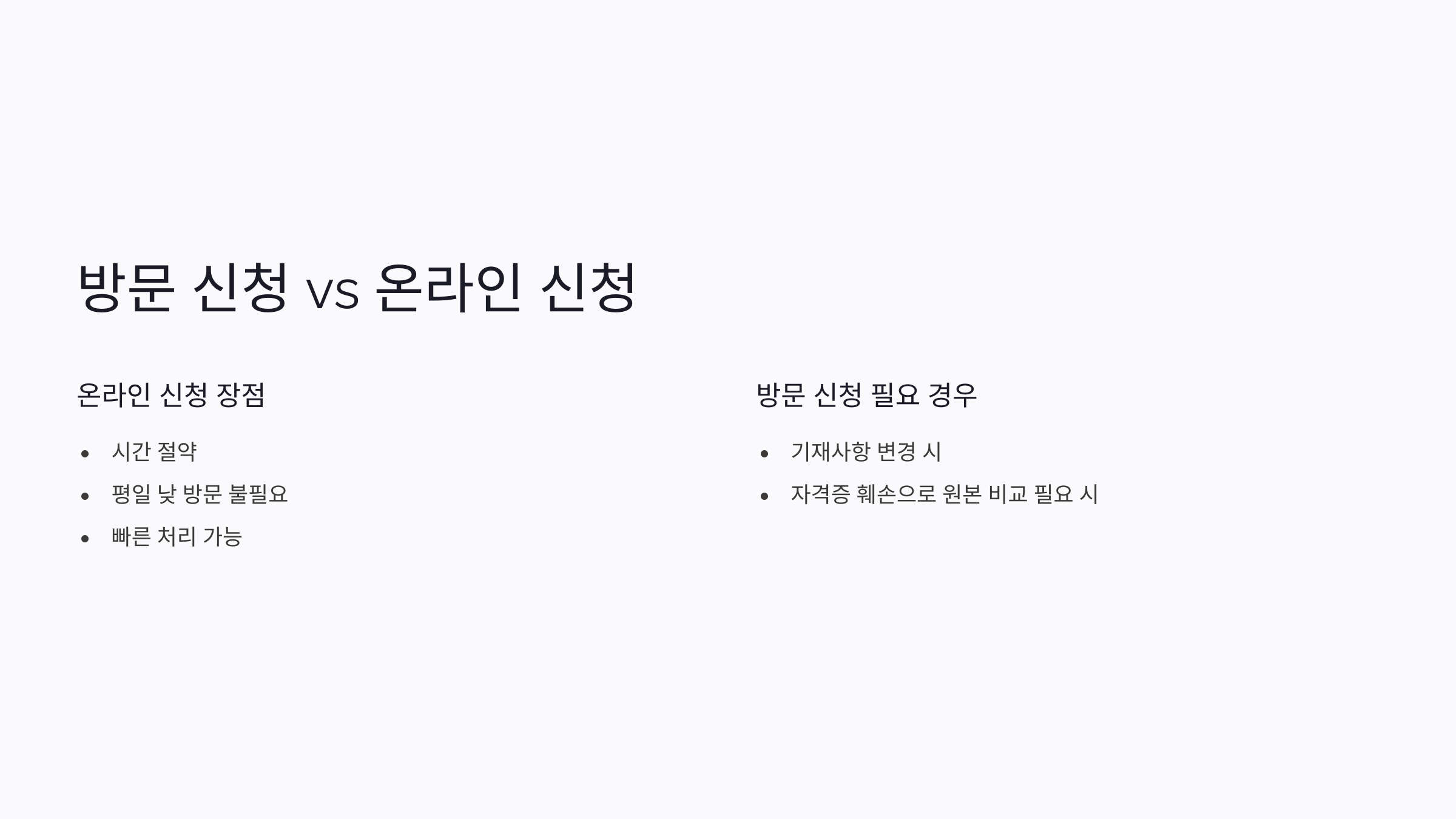 게다가 단순 분실이라면 굳이 방문할 필요 없이 온라인 신청이 훨씬 빠르고 편리하더라구요!