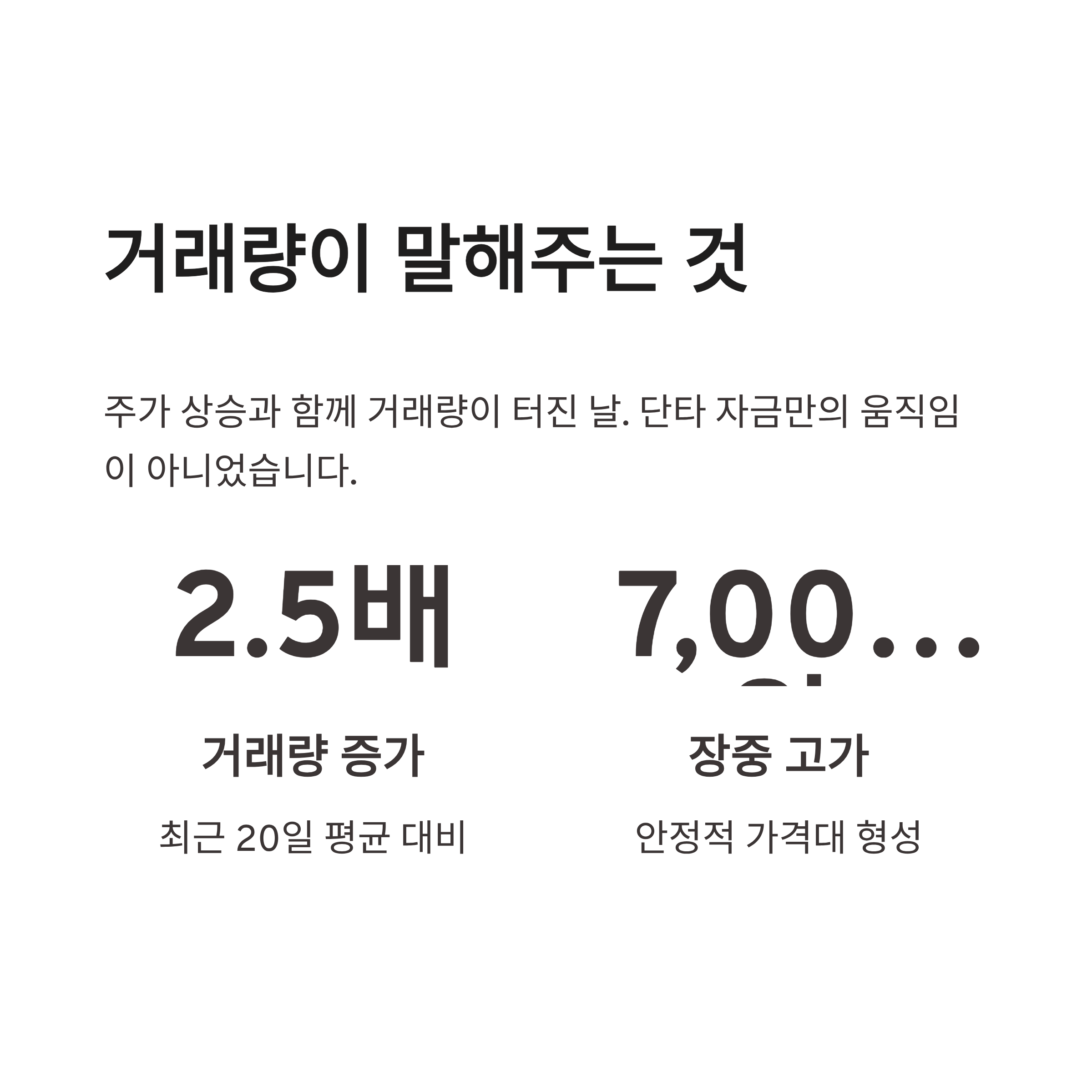 | 거래량 | 최근 20일 평균 대비 약 2.5배 |