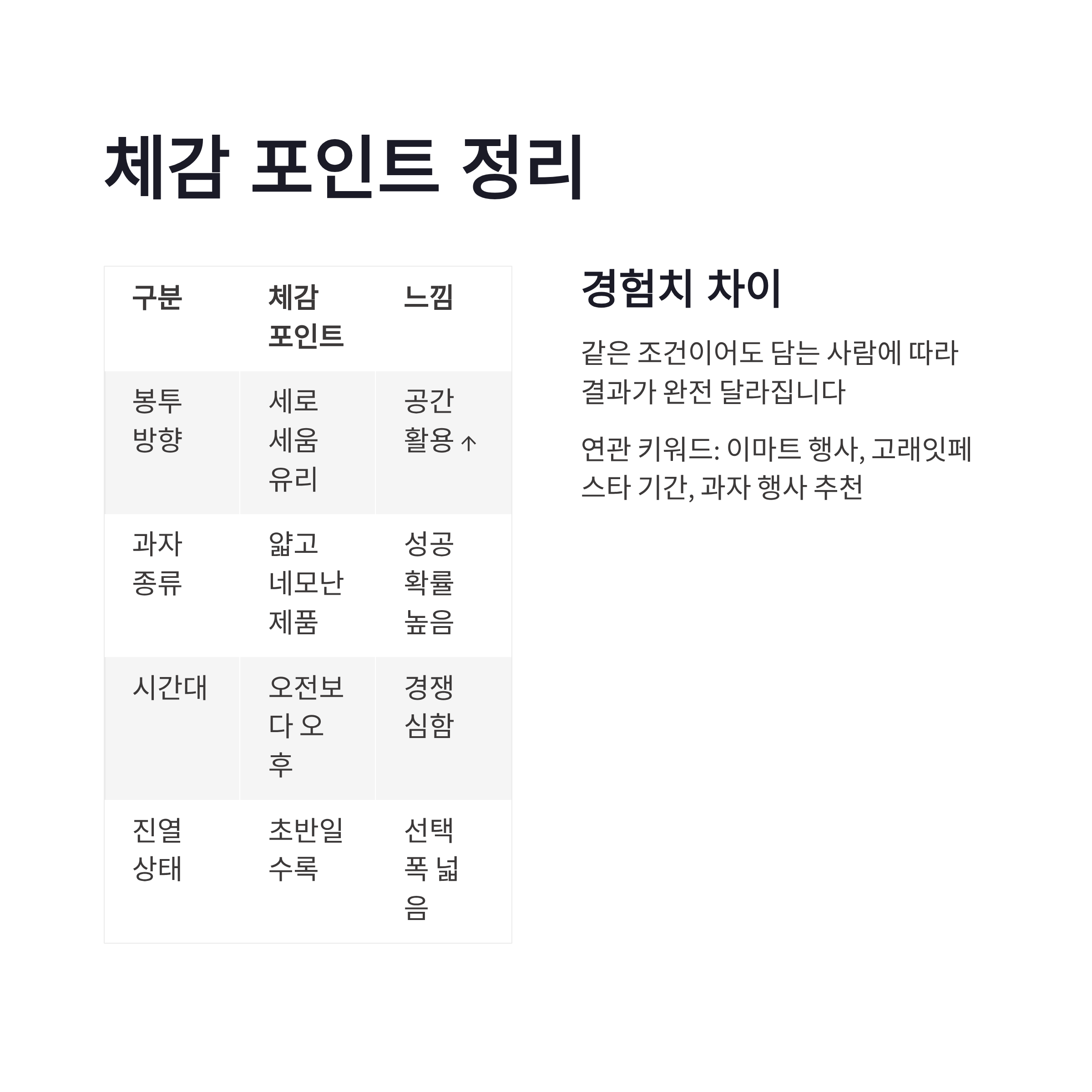 | 진열 상태 | 초반일수록 | 선택 폭 넓음 |