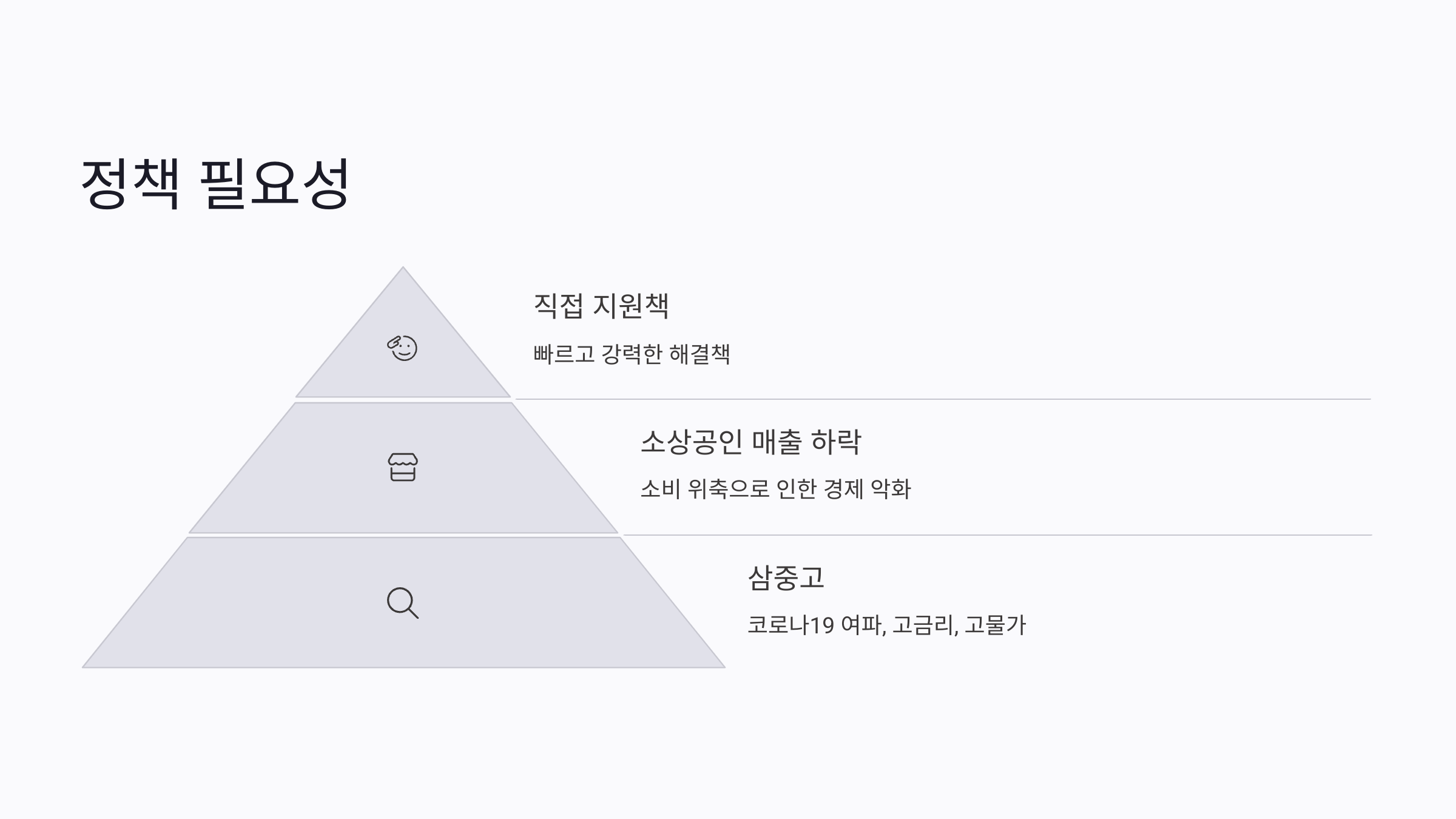 - 국민들 소비 위축 → 소상공인·자영업자 매출 하락