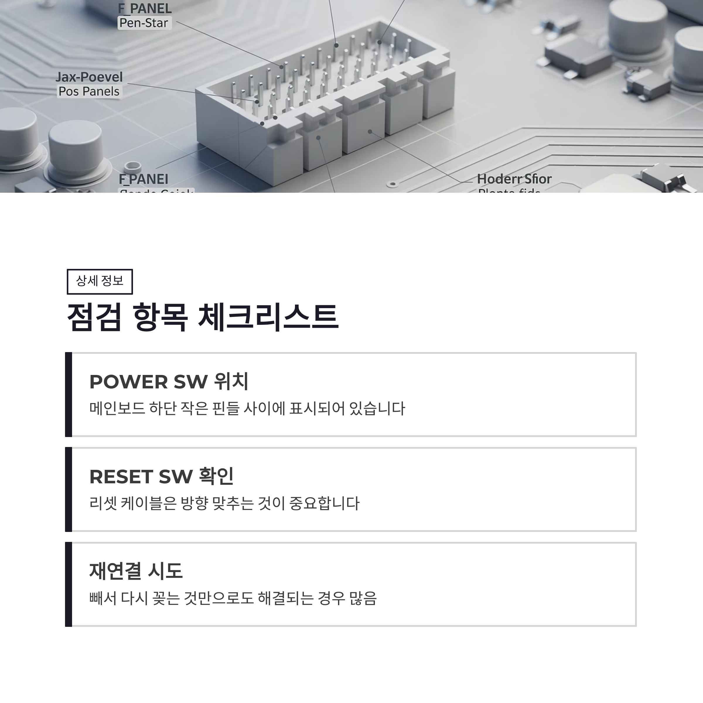 전원 리셋 케이블 점검 순서와 연결 위치